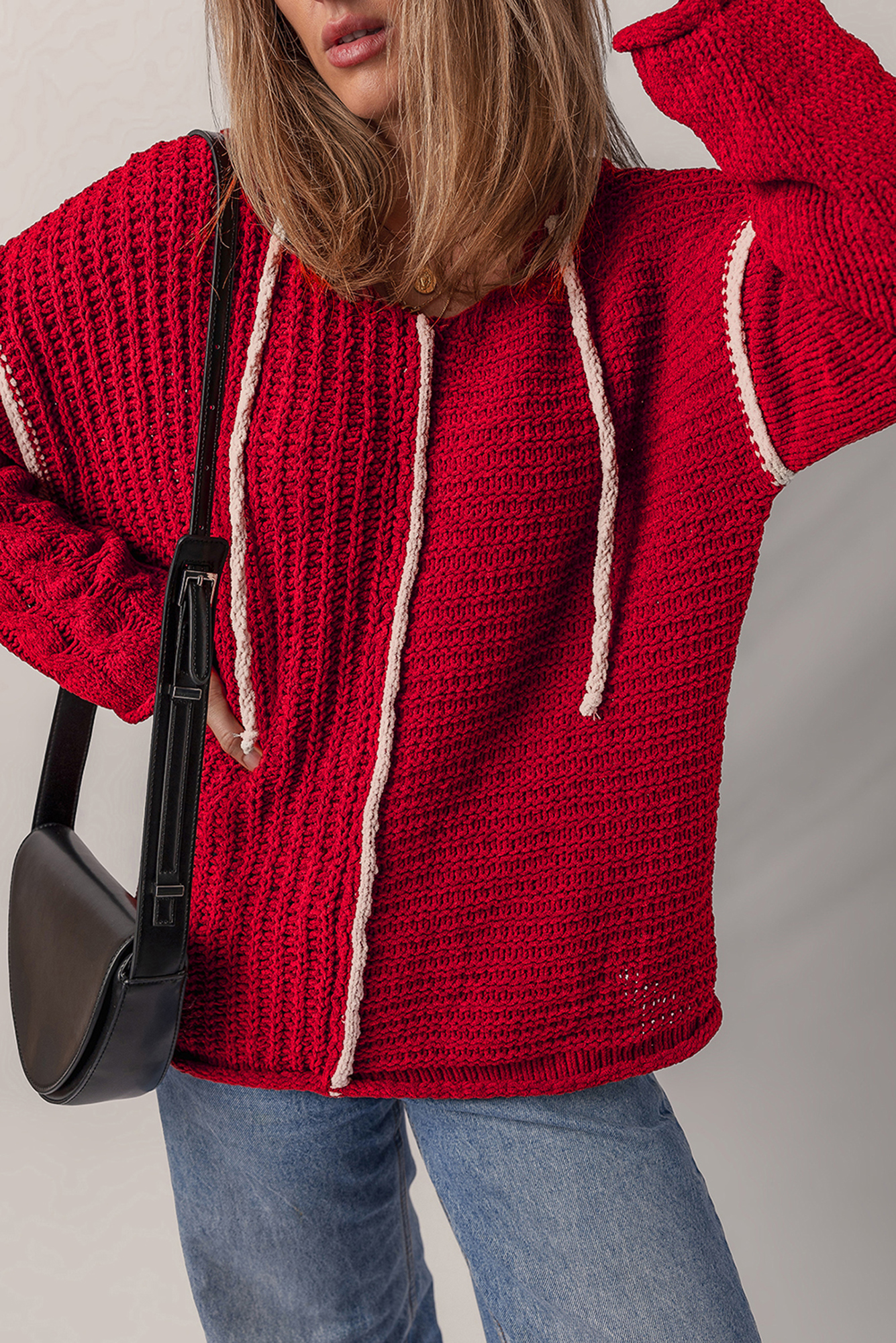 Meet Olivia Knit Drawstring Hooded Sweater—effortless, flattering, and easy to style for everyday life. Contrast trim adds a bold, modern edge to this cozy knit hooded sweater. Textured knit fabric gives depth and warmth for fall and winter wear. Drawstring hood adds function and casual style to this sweater. Loose fit makes it easy to layer over tees or tanks. sweaters for women are stylish with new styles. Material: 100%Acrylic.
