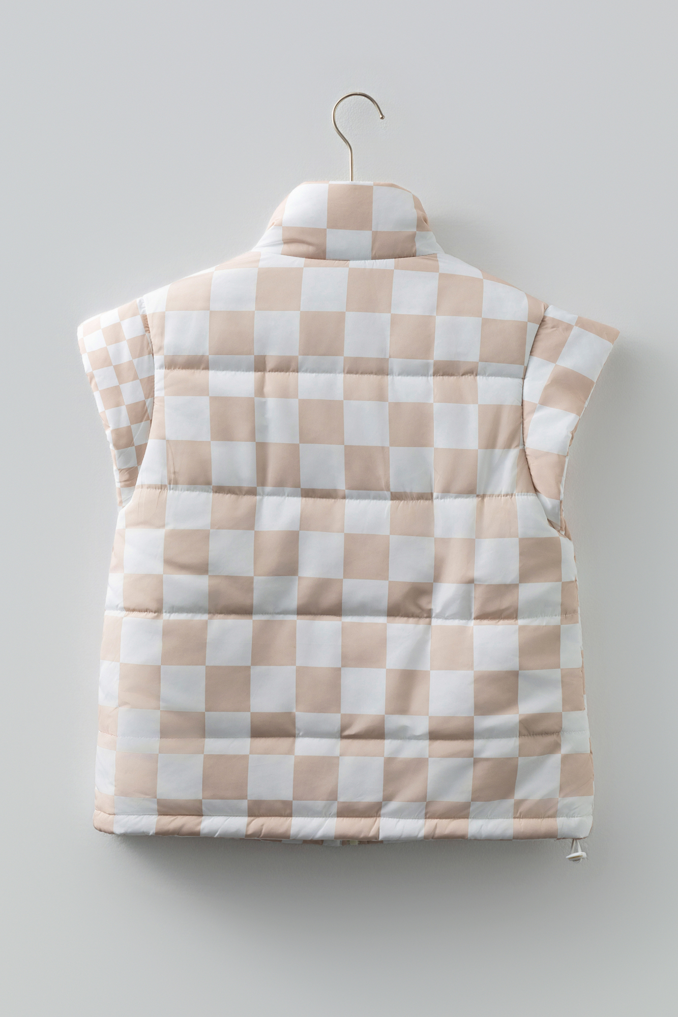 Meet Ophelia Quilted Zip Up Vest—effortless, flattering, and easy to style for everyday life. Perfect a stylish yet cozy extra layer with this vest. Featuring a contrast design of trendy checkered patterns. Mock neck, a zip-up and button-down closure, and zipped pockets. Style over any long sleeve shirt or sweater to get extra warmth. vests for women at amazing prices. Material: Shell:100%Polyester+Lining:100%Polyester+Filling:100%Polyester.