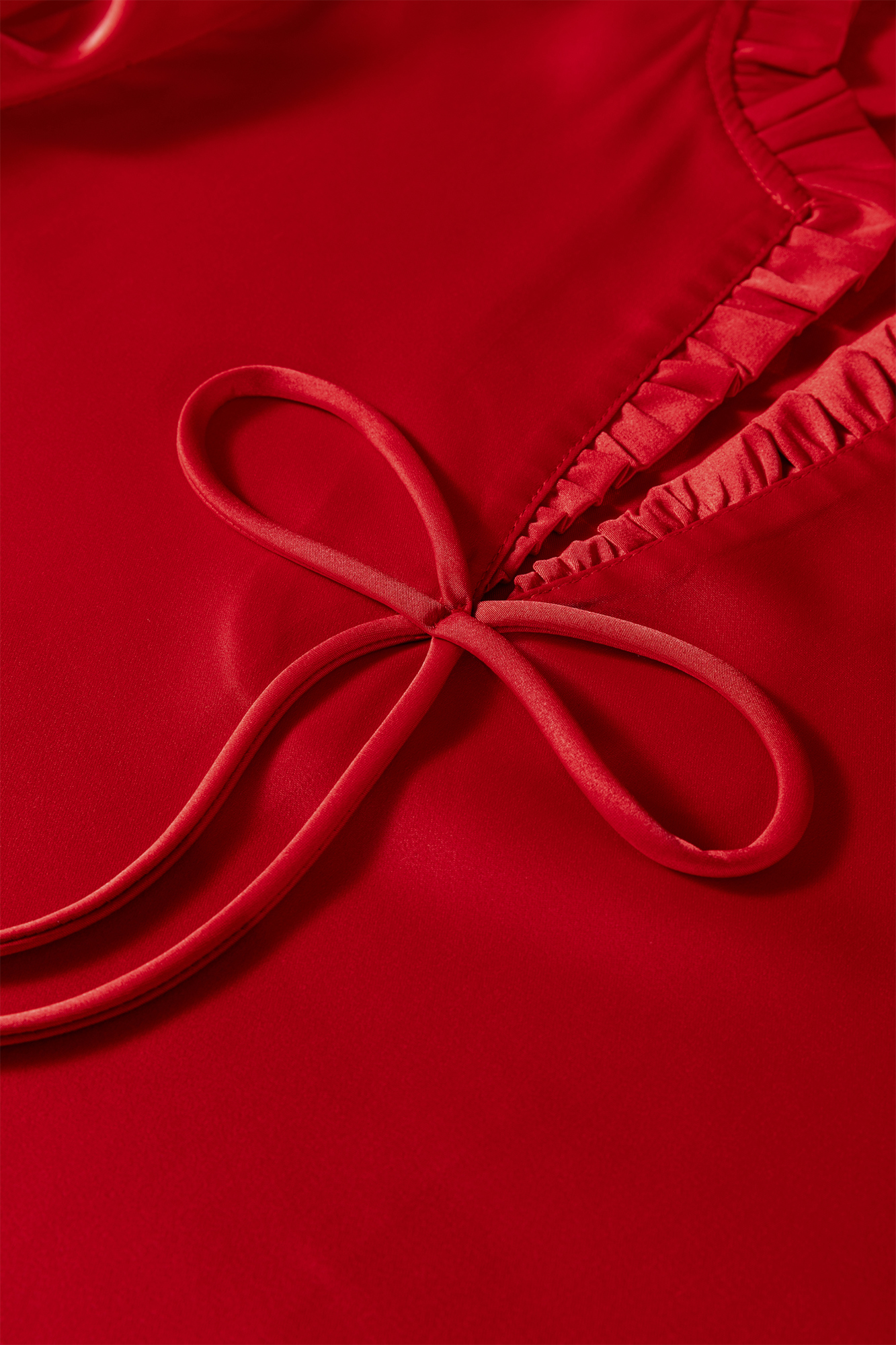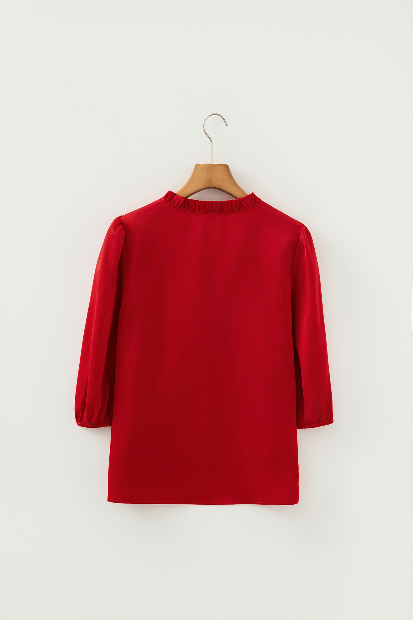 Paislee 3 4 Sleeve Blouse is made for real life—easy to wear, easy to love. Elegant V neck blouse highlights the neckline beautifully. Feminine frilled trim adds soft, delicate charm. Bow detail creates a cute, polished focal point. 3/4 sleeves offer breathable coverage for any season. Material: 90%Polyester+10%Elastane.