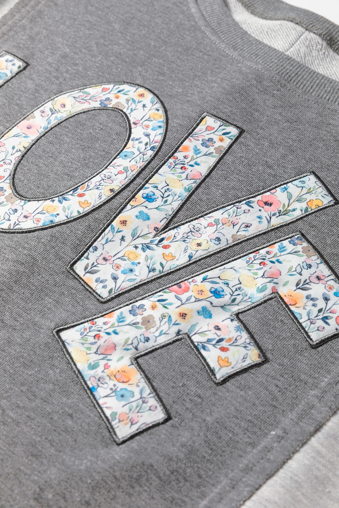 Meet Payton Uneven Hem Chic Sweatshirt—effortless, flattering, and easy to style for everyday life. Bold LOVE graphic sweatshirt adds charm to any casual look. Exposed seam detail and patchwork give it a trendy, edgy fashion-forward touch. Uneven hem design creates a modern silhouette that flatters all body types. Cozy fabric blend keeps you warm and stylish. sweatshirts for women pair well with any fashion pants. Material: 65%Polyester+35%Cotton.