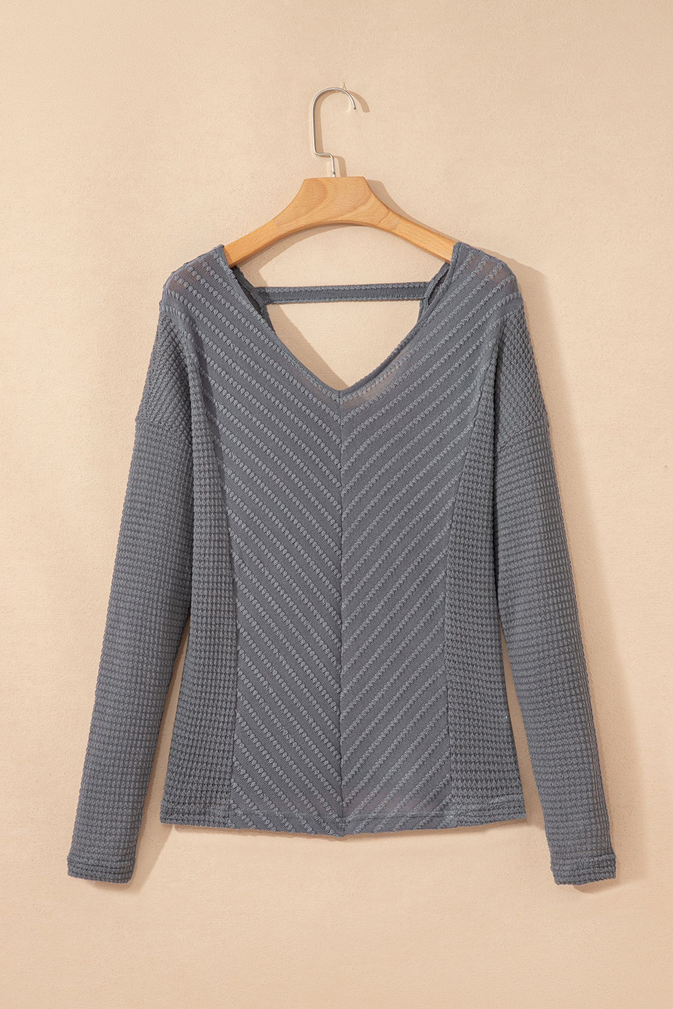 From coffee runs to casual nights out, Phoenix Sleeve Knit top Long Sleeve Top is ready for it all. Stylish chevron texture adds depth and visual interest to this knit top. Flattering V neck design highlights your neckline with a modern touch. Long sleeves patchwork create a mixed textured fabric. The solid color and concise style make it a versatile piece for easy pairing. Material: 95%Polyester+5%Elastane.