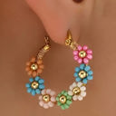 Pink Colorful Flower Hoop Earrings