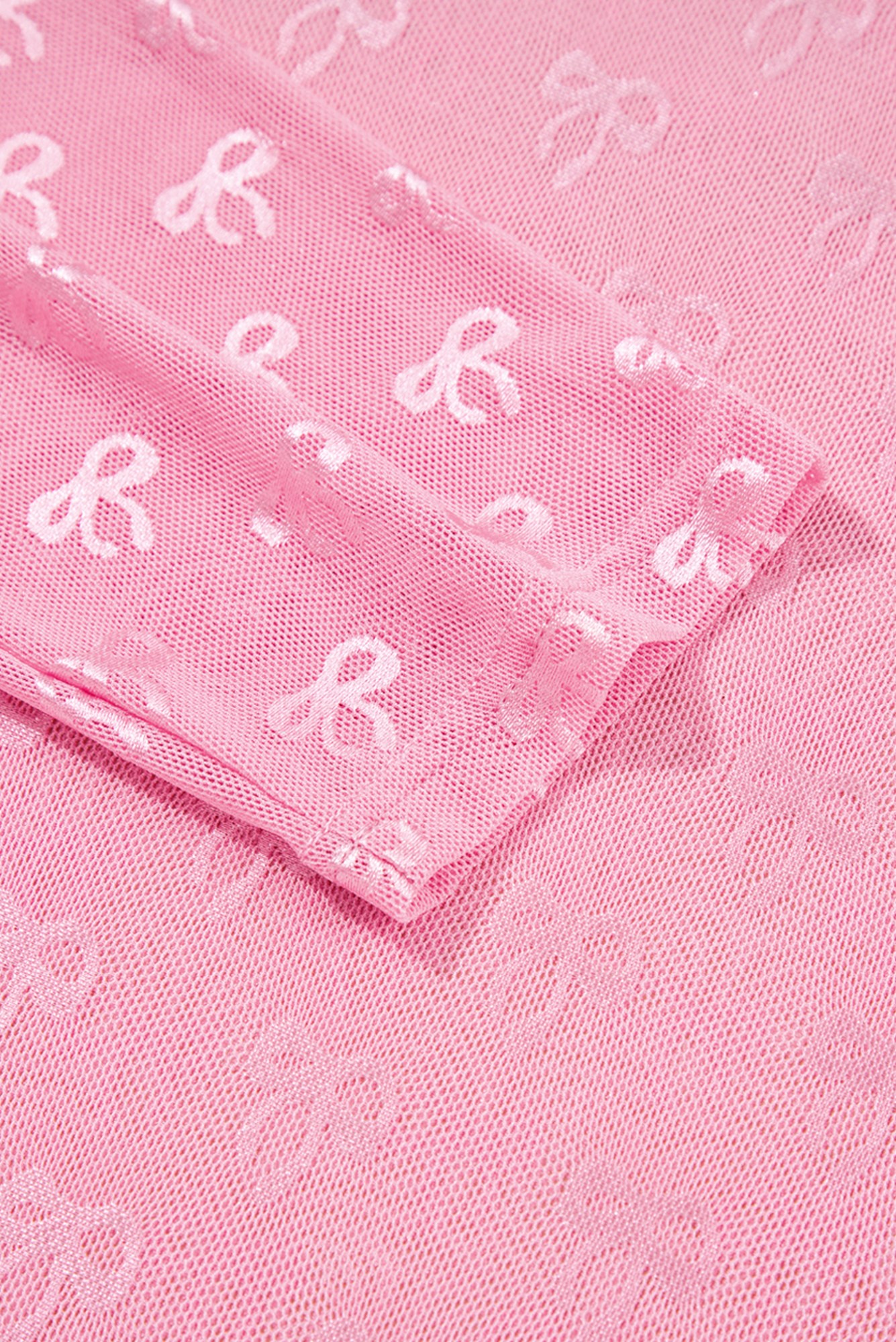 Pink Plus Size Bow Embroidered Mesh Long Sleeve Top