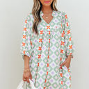 Reagan Floral Print 3/4 Sleeve Notched Neck Mini Dress