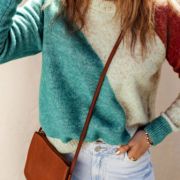 Nicole Ribbed Trim Round Neck Sweater