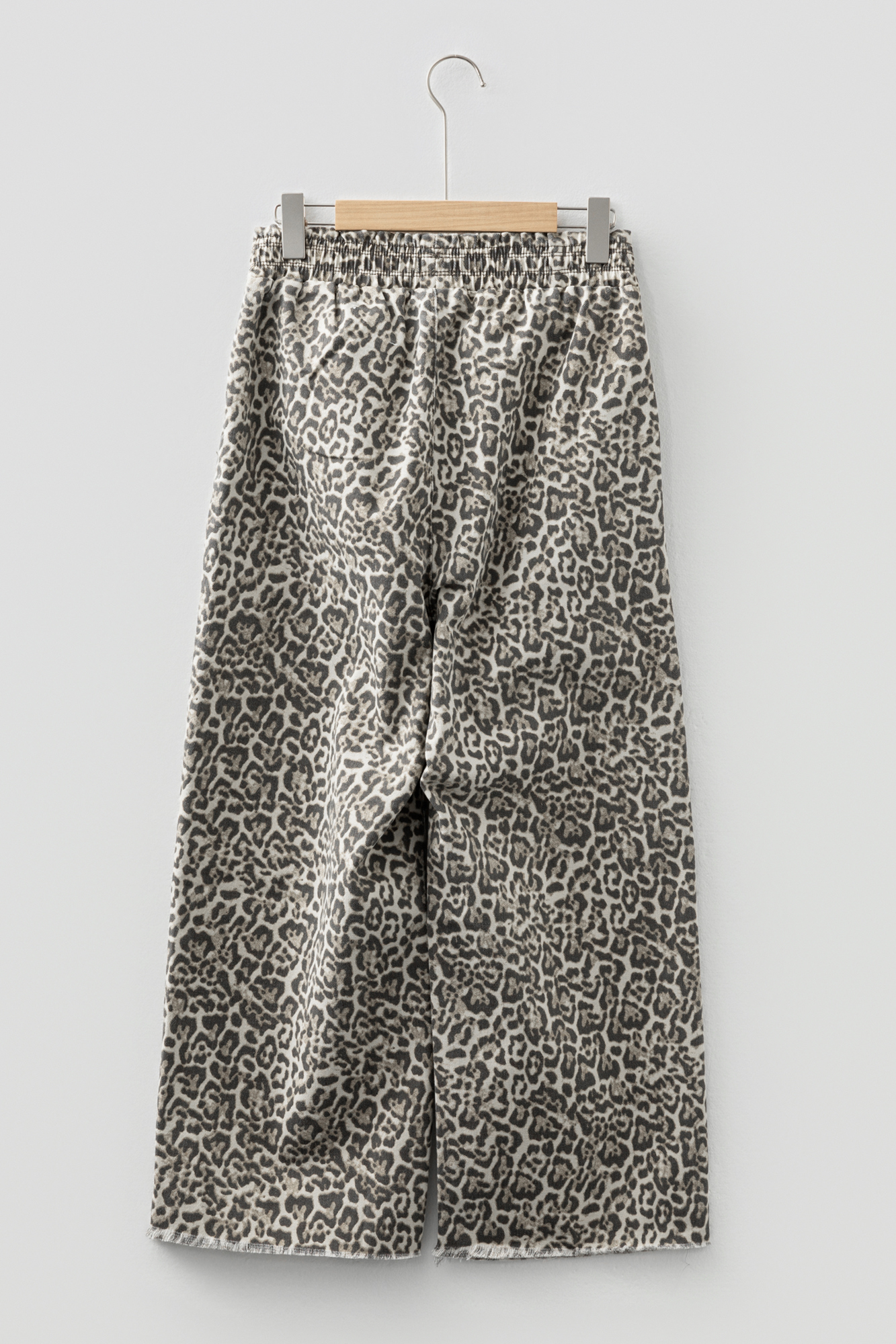 Rivka Loose Pull On Jeans brings you easy comfort with just the right touch of everyday style. These leopard print jeans bring the perfect mix of wild and chill. Loose denim pants designed with an elastic waist for easy pulling on. They have 2 large functional pockets, finished with raw hem. Pair them with a solid tee or tank, and let your pants do all the talking. Material: 65%Cotton+33%Polyester+2%Elastane.
