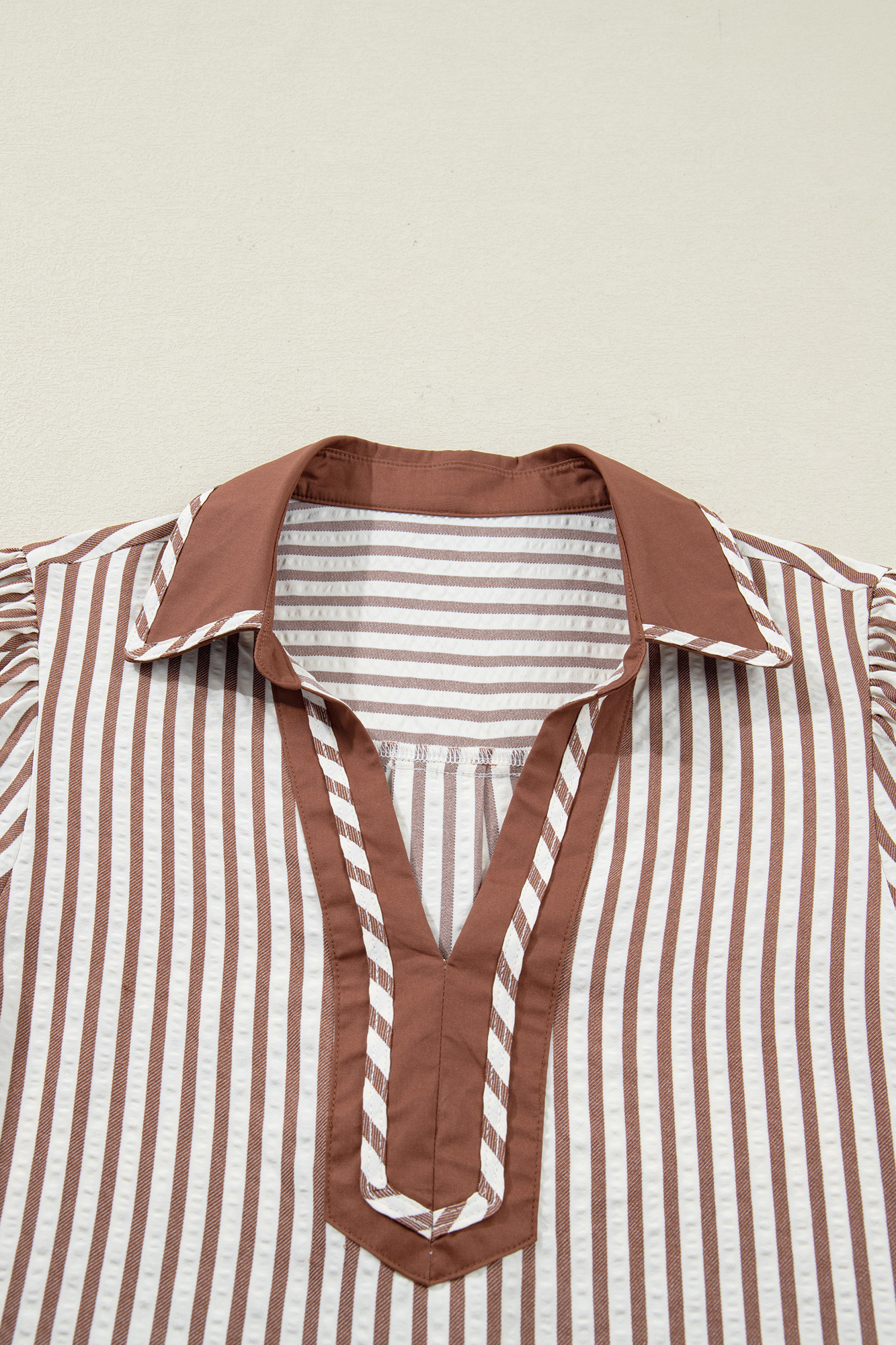Make Romina Short Bubble Sleeve Blouse your grab-and-go choice for effortless, everyday dressing. This striped blouse is classic and stylish to dress up. It features a collared split neck design which is sexy elegant. The short bubble sleeve design make this blouse top more feminine. This versatile blouse is lightweight and comfy without stretch. Material: 50%Polyester+50%Viscose.
