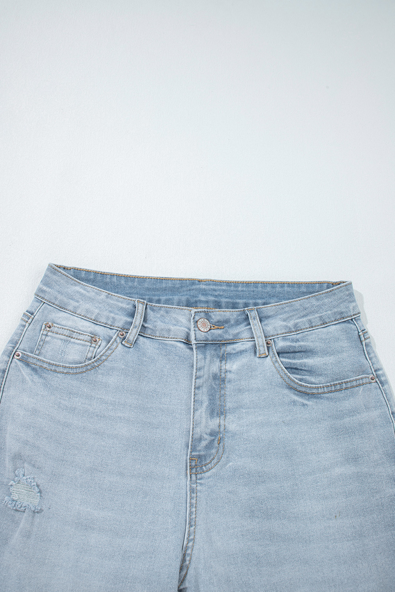 Meet Scarlett Length Distressed Skinny Jeans—effortless, flattering, and easy to style for everyday life. Distressed detailing adds edgy appeal to this fashion jeans for women. Flattering mid-rise cut for a modern look. Ankle-length style is very trending to make a chic statement. Light wash enhances casual, fashion-forward flair. jeans for women with skinny styles to accentuate curves. Material: 65%Cotton+33%Polyester+2%Elastane.