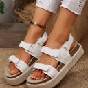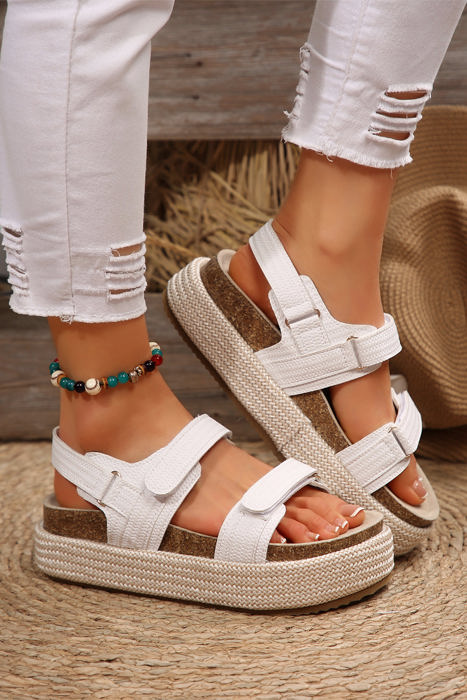 Step up your look with these fun platform sandals! The double Velcro straps let you adjust for the perfect fit, while the woven texture and cushioned sole keep your feet comfy all day long. Rock the platform heel and turn heads wherever you go!