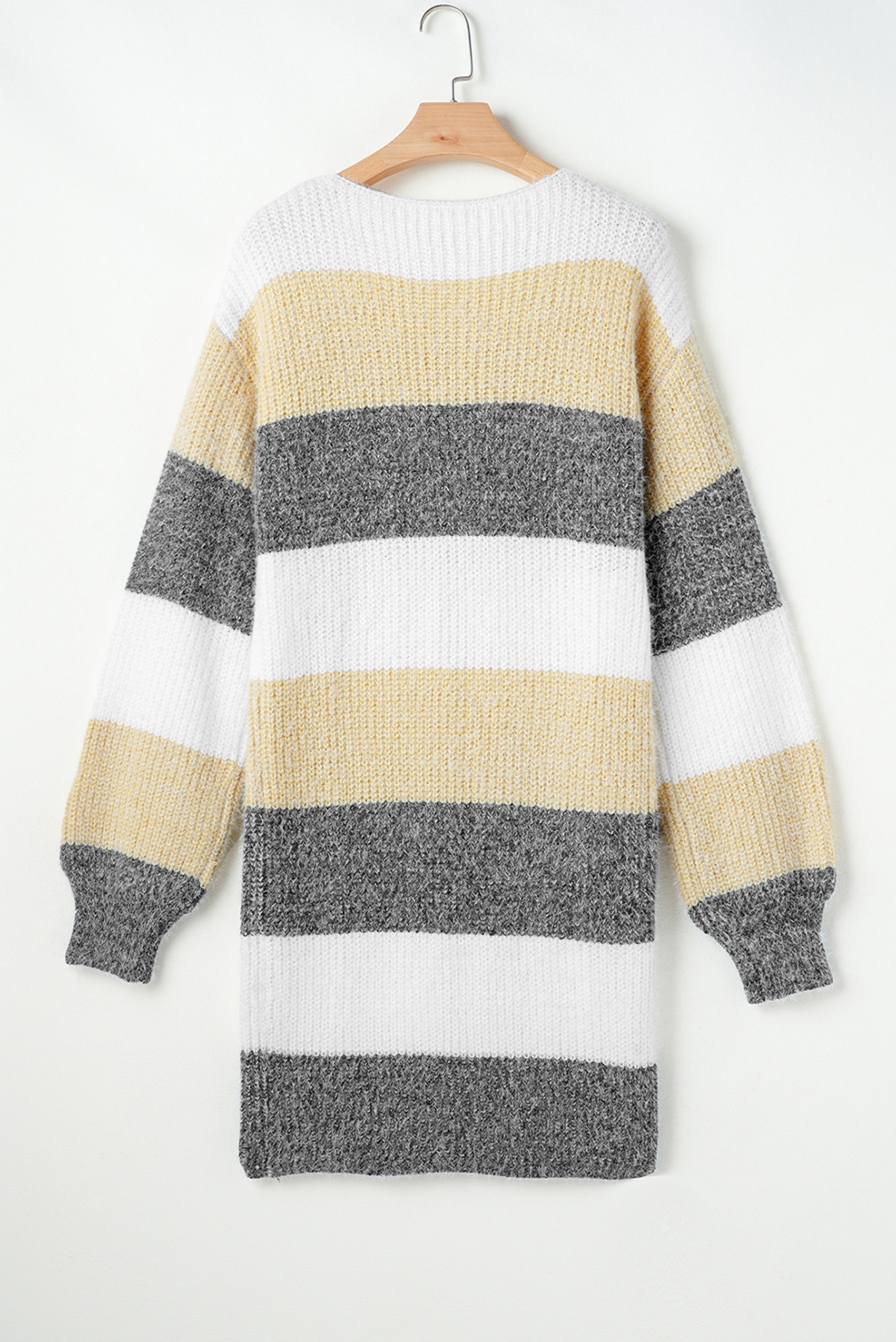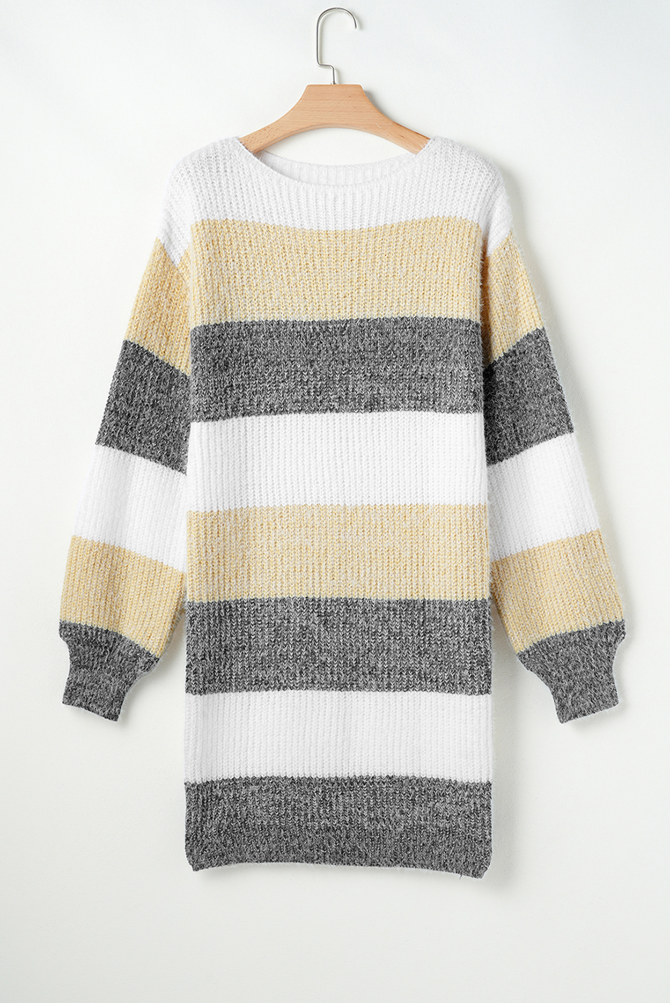 Meet Sofia Sleeve Drop Shoulder Sweater—effortless, flattering, and easy to style for everyday life. The knitted dress features a vibrant colorblock design that adds a pop of color and visual interest. It boasts graceful bubble sleeves that provide a dramatic, eye-catching element to the silhouette. The drop shoulder design is chic creating a laid-back style. This dress combines the comfort of a sweater with the elegance of a dress, a cozy and stylish choice. Ideal for various occasions from casual outings to dressed-up events, sweater dresses are versatile wardrobe additions. Material: 55%Acrylic+45%Polyamide.
