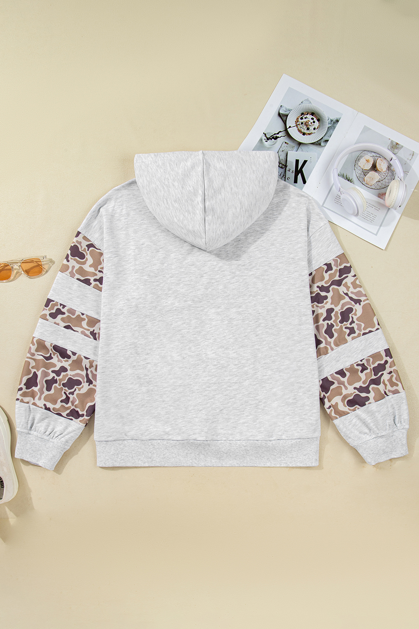 Meet Sophia Patchwork asymmetric Sleeve Hoodie—effortless, flattering, and easy to style for everyday life. Unique camouflage patchwork design for a chic look. Asymmetric sleeve detail adds trendy flair. Relaxed plus size fit for comfort and ease. Adjustable drawstring hood for casual styling. Plus size hoodies for streetwear, lounging, etc. Material: 65%Polyester+35%Cotton.