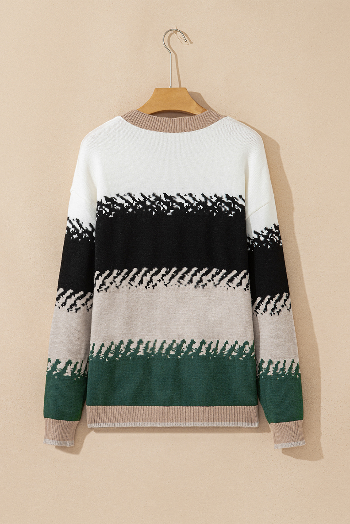 Meet Sophia Pattern Drop Shoulder Sweater—effortless, flattering, and easy to style for everyday life. Trendy color block sweater for women adds bold flair. Drop shoulder design creates a relaxed, oversized fit. Made from soft knit fabric, perfect for layering on chilly days. Stylish sweater pairs easily with jeans for an everyday look. Buy sweaters in bulk cheaply from Dear-Lover. Material: 52%Viscose+26%Polyester+22%Polyamide.