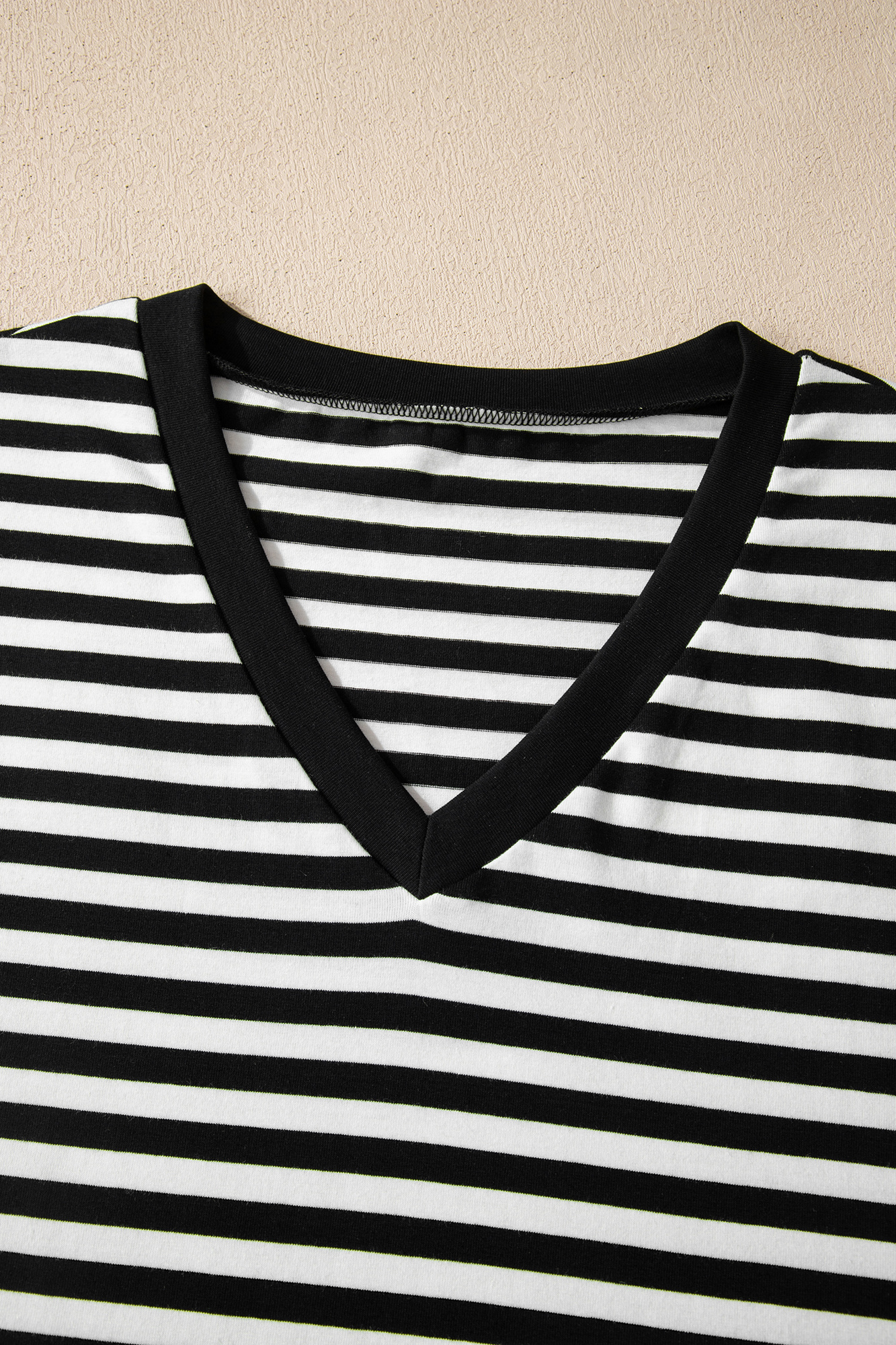 With Stevie Delicate Trim Casual Tee, getting dressed is as simple as slip on, style, and go. Striped V neck tee adds a fresh, effortless touch to everyday outfits. Delicate trim gives this casual tee a refined, feminine finish. Soft, breathable fabric keeps the striped top comfortable all day. Flattering V neck design shows off sexy collarbones and enhances a slim look. Material: 95%Cotton+5%Elastane.