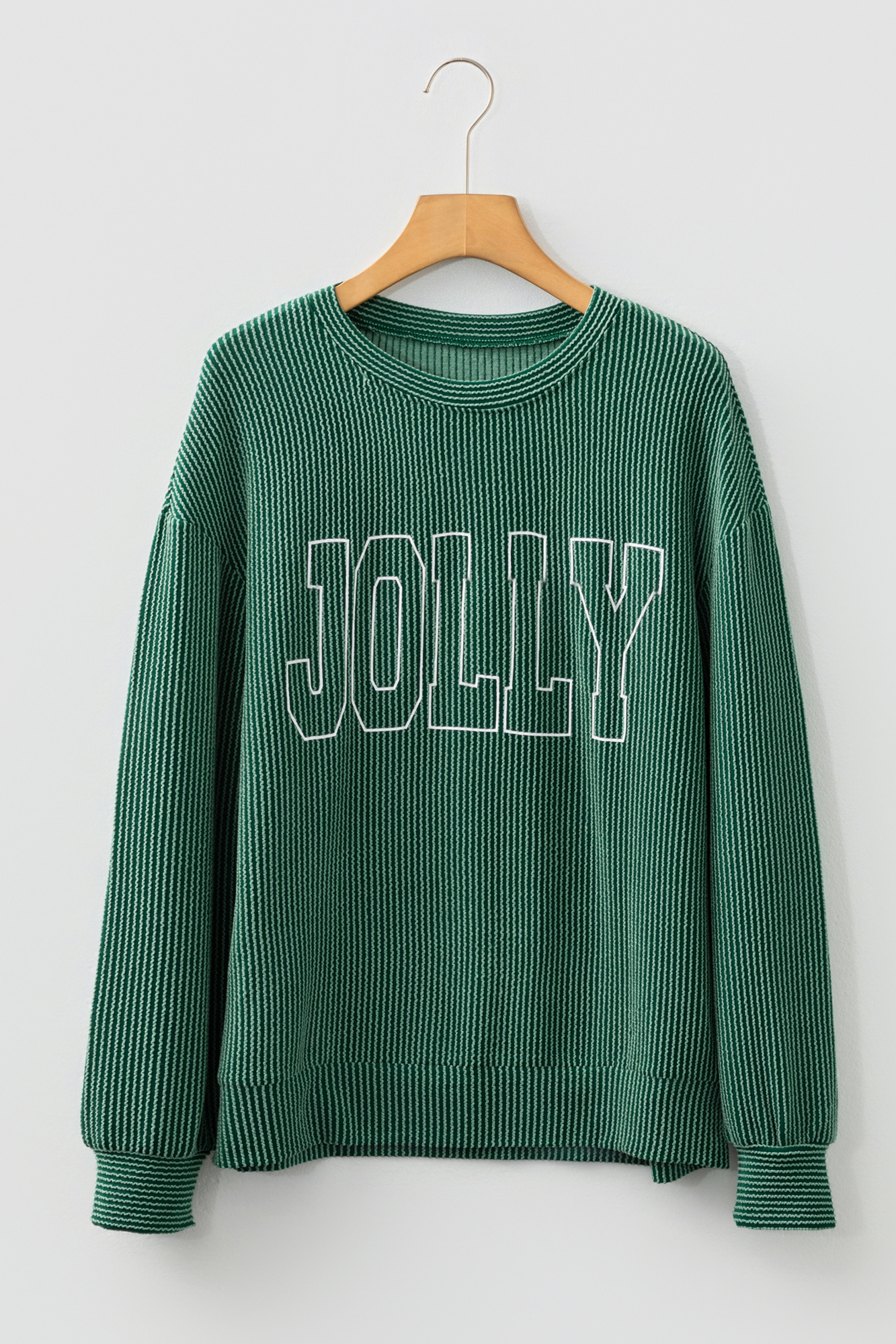 Ximena Letter Graphic Loose Long Sleeve Top brings you easy comfort with just the right touch of everyday style. Celebrate the festive season in MERRY pullover. Baggy long sleeve top will suit different body shapes well. It has a classic round neck and dropped shoulder design. Made of quality fabric with a trendy twisted ribbed texture. Shop now to get best long sleeve tops for your fashion wardrobe. Material: 75%Polyester+20%Viscose+5%Elastane.