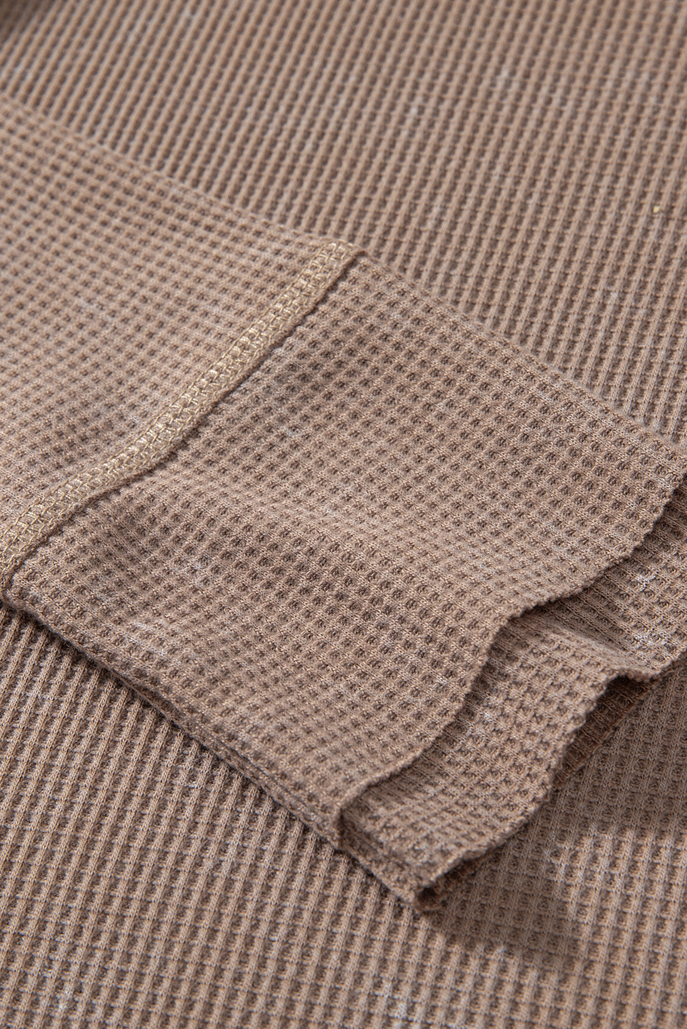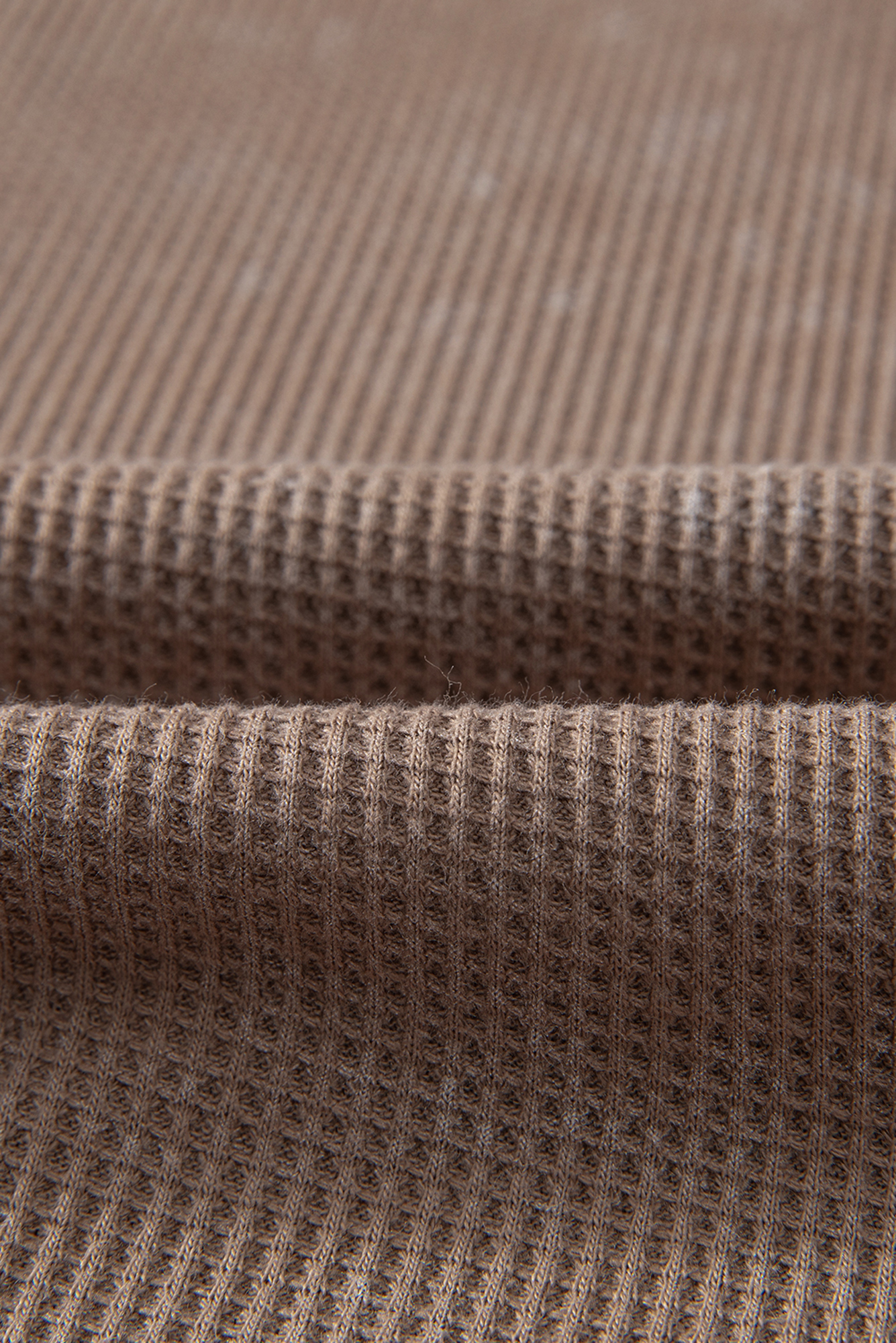 Meet Zahra Waffle Knit Neckline Long Sleeve Top—effortless, flattering, and easy to style for everyday life. This acid wash top provides a trendy and edgy look. Cozy waffle knit material for comfort and style. Buttoned neckline adds a touch of detail and versatility. Long sleeves for added warmth and a classic silhouette. long sleeve tops feature captivating patterns and textures. Material: 65%Polyester+35%Cotton.