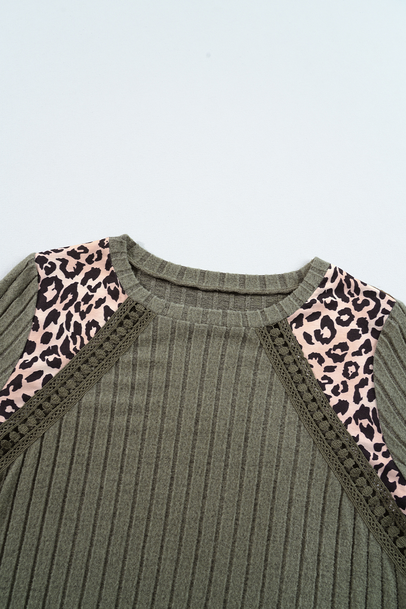 Meet Zelda Rib Textured Knit Top—effortless, flattering, and easy to style for everyday life. The top for ladies features a bold and fashionable leopard print that makes a strong style statement. Intricate crochet patchwork adds a unique, artisanal touch to the design. The rib-knit texture provides a snug and comfortable fit with a visually appealing pattern. Made with a soft material, this top is perfect for staying warm and cozy during cooler seasons. long sleeve tops for women including various chic designs suitable for various occasions. Material: 95%Polyester+5%Elastane.