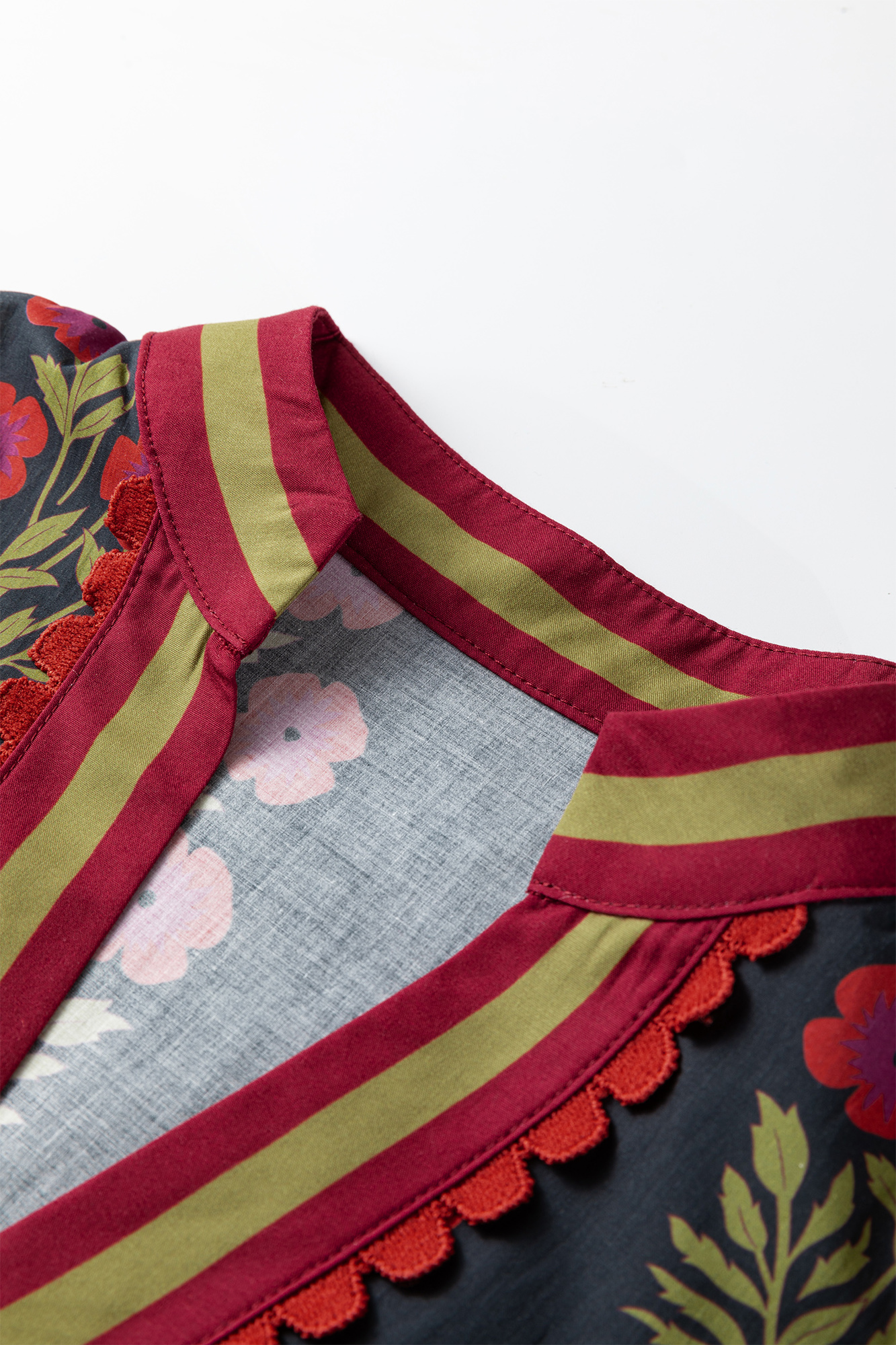 From coffee runs to casual nights out, Zoe Contrast Slit Neckline Blouse is ready for it all. Turn heads the moment you walk in wearing this floral blouse. Featuring a stunning floral print, ricrac detail, and striped patchwork. Made from 100% cotton fabric with short puff sleeves and a notched neck. Pair this cute blouse with your daily jeans or skirts for a fashion outfit. Material: 100%Cotton.