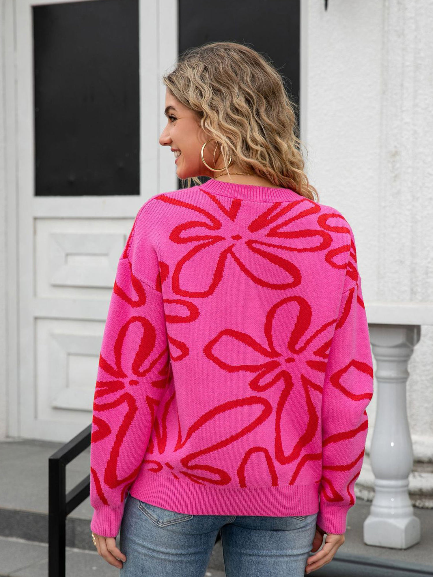 This women’s floral sweater pairs effortlessly with jeans, trousers, or skirts for easy, elevated styling. Whether you’re heading to brunch, running errands, or enjoying a cozy day out, this sweater delivers warmth, comfort, and standout style.