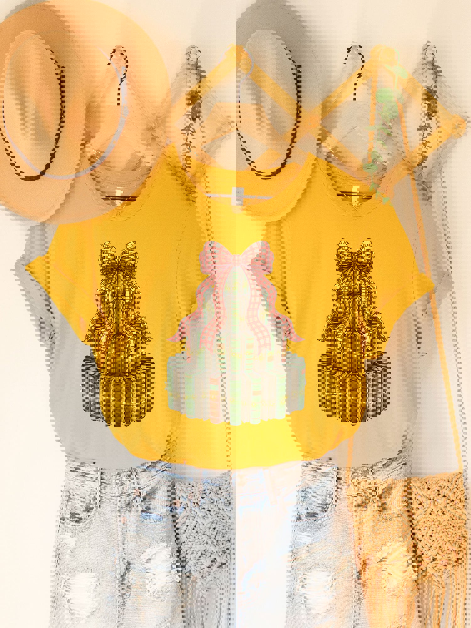 Collect yourself in the most fashionable way possible this season! Nothing says bring on holiday fun-like fun graphic tees! Pair this with your favorite denim and boots for an elevated comfy look!