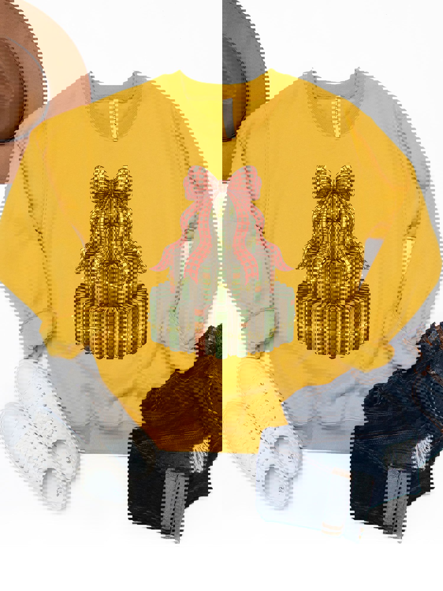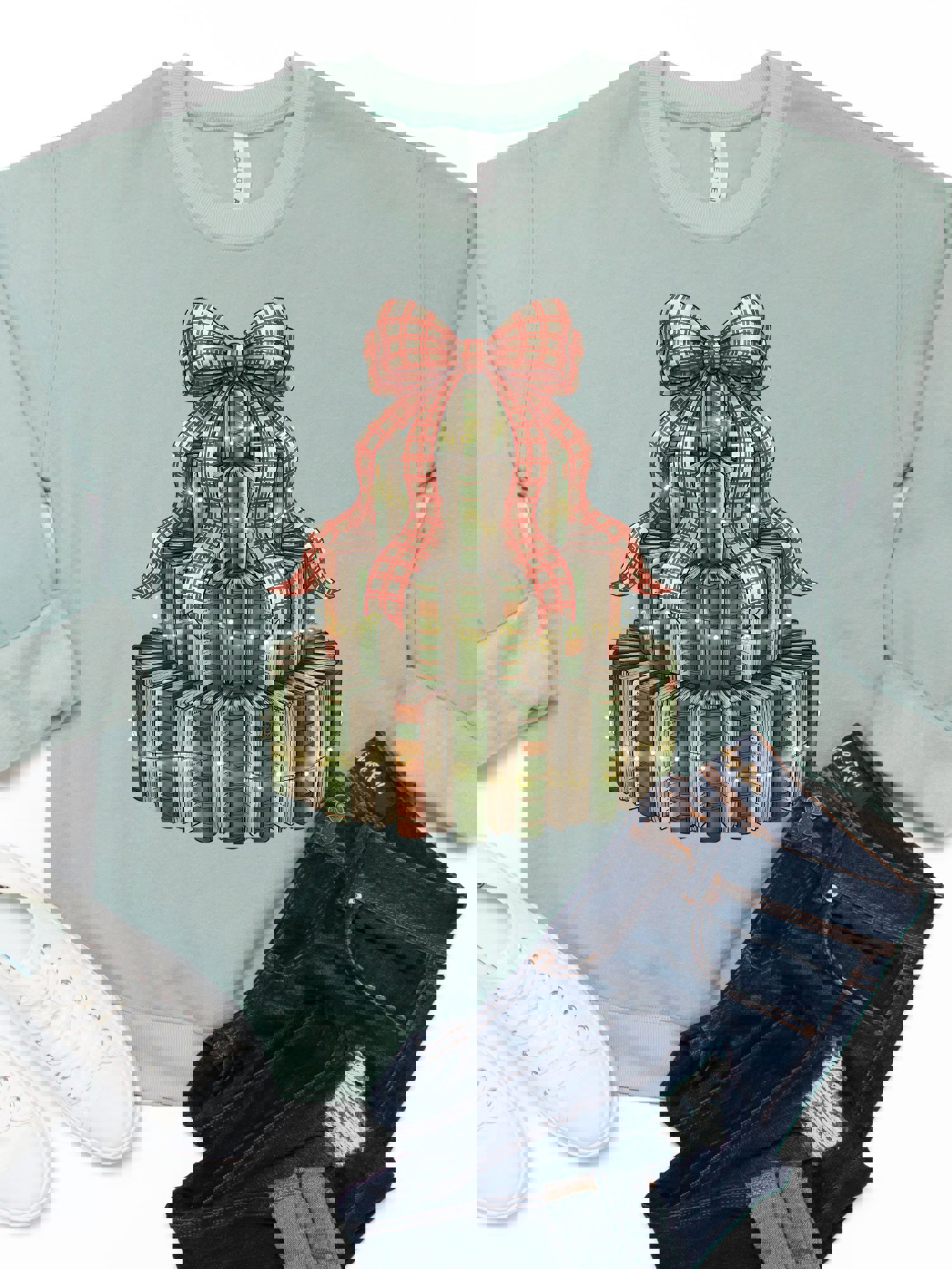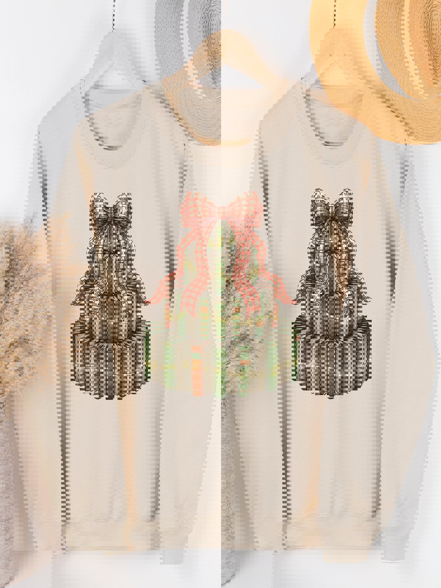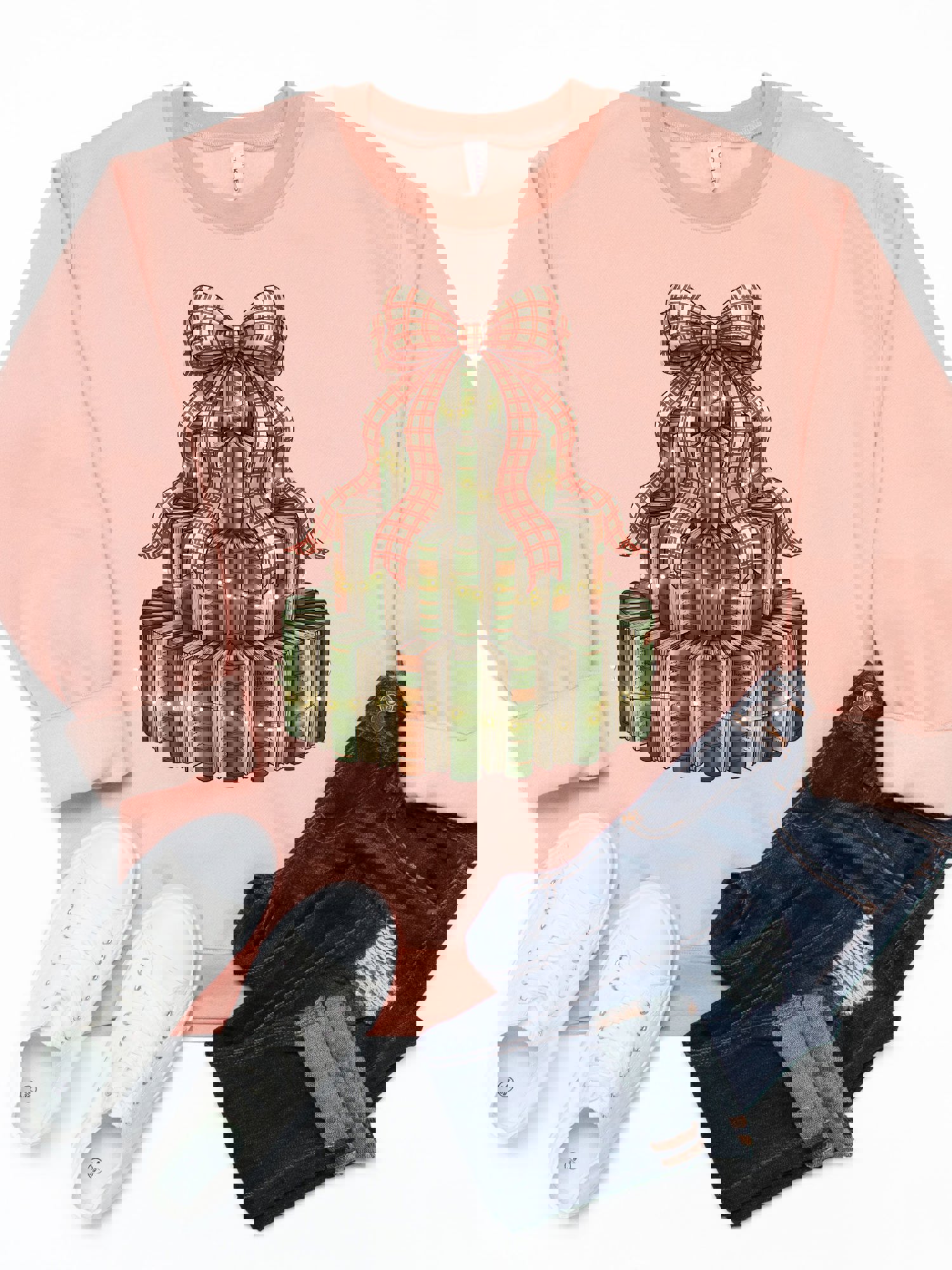 Embrace the season in style! This sweatshirt rocks a playful design, making it the perfect addition to your holiday wardrobe. Complete the look with trendy high-waisted jeans and boots! Perfect for cool evenings or a night by the bonfire.