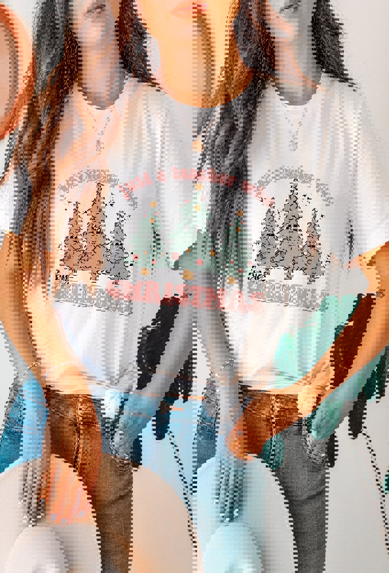Collect yourself in the most fashionable way possible this season! Nothing says bring on the Holidays like fun graphic tees! Pair this with your favorite high waisted jeans and boots for a winter worthy look!