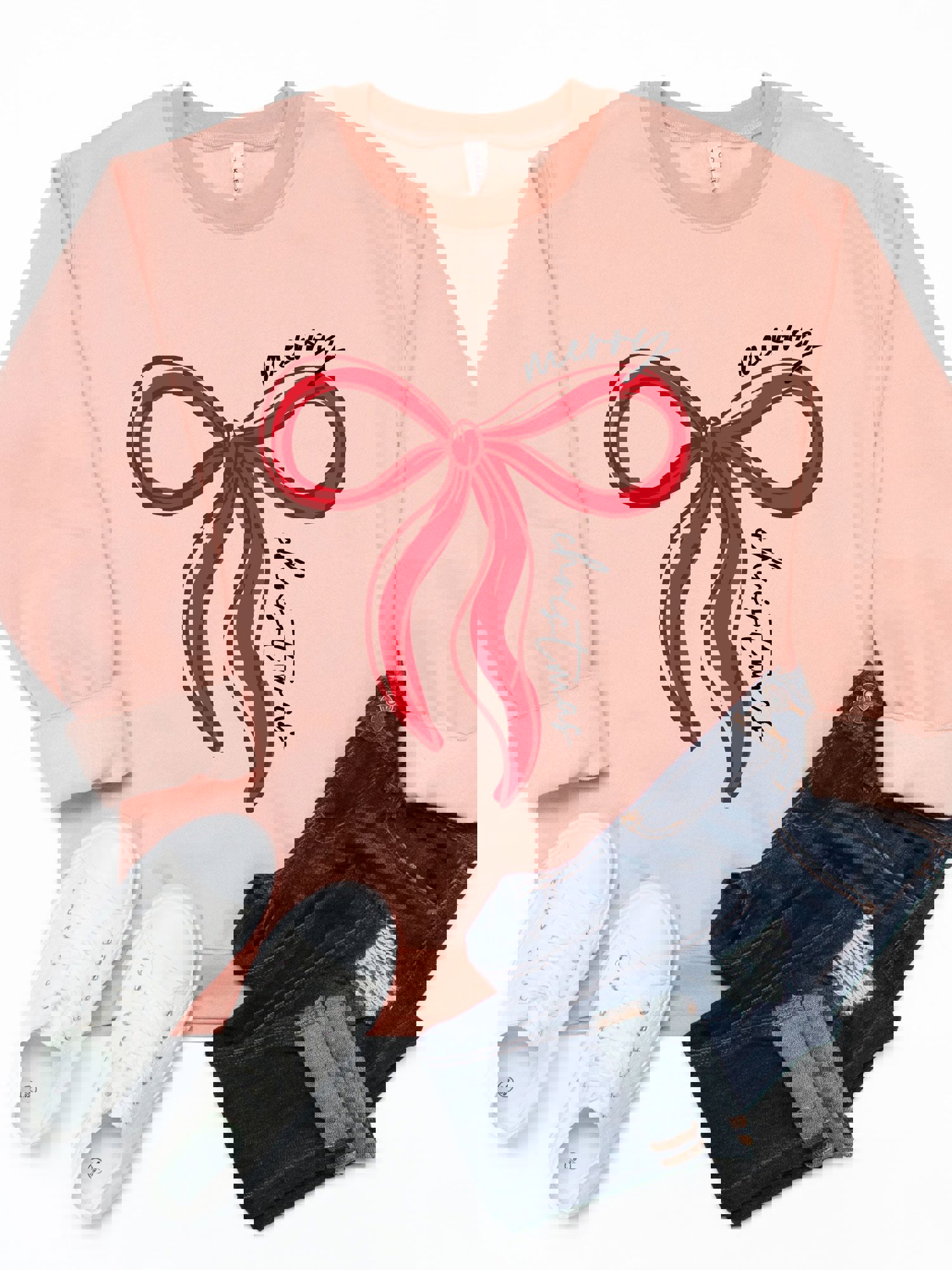Embrace the season in style! This sweatshirt rocks a playful design, making it the perfect addition to your holiday wardrobe. Complete the look with trendy high-waisted jeans and boots! Perfect for cool evenings or a night by the bonfire.