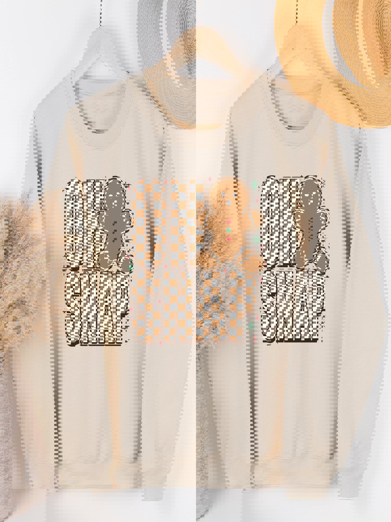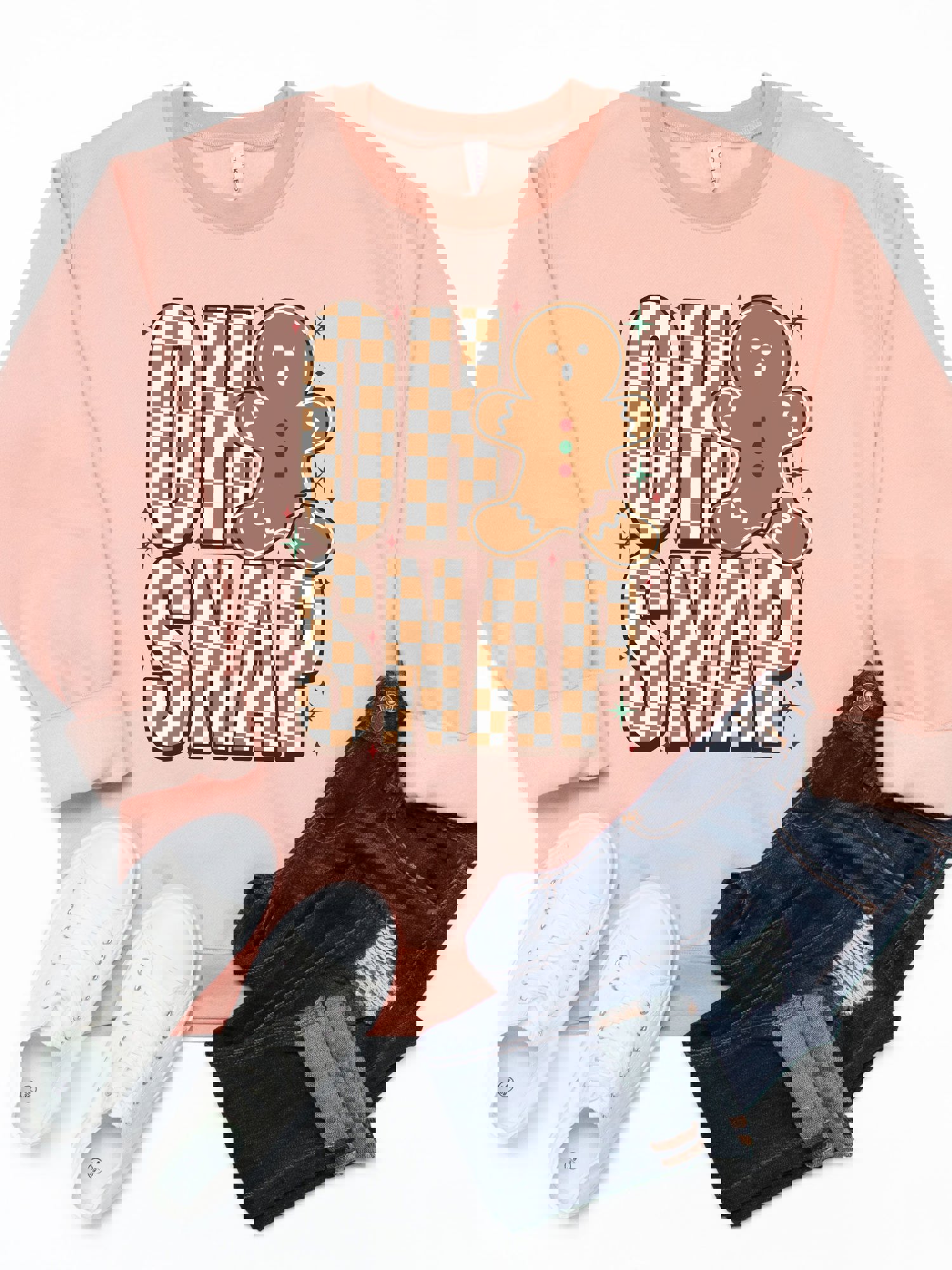 Embrace the season in style! This sweatshirt rocks a playful design, making it the perfect addition to your holiday wardrobe. Complete the look with trendy high-waisted jeans and boots! Perfect for cool evenings or a night by the bonfire.