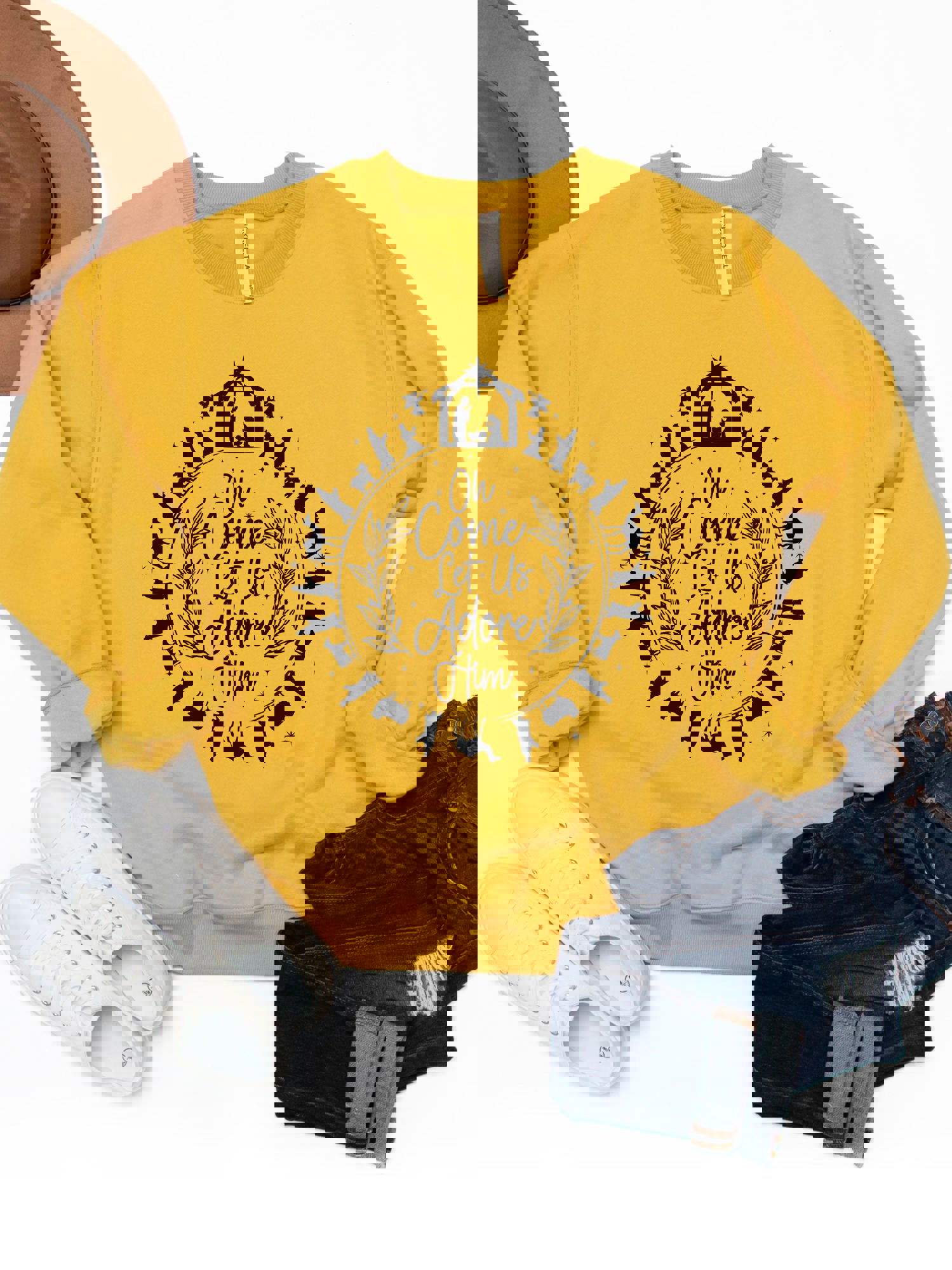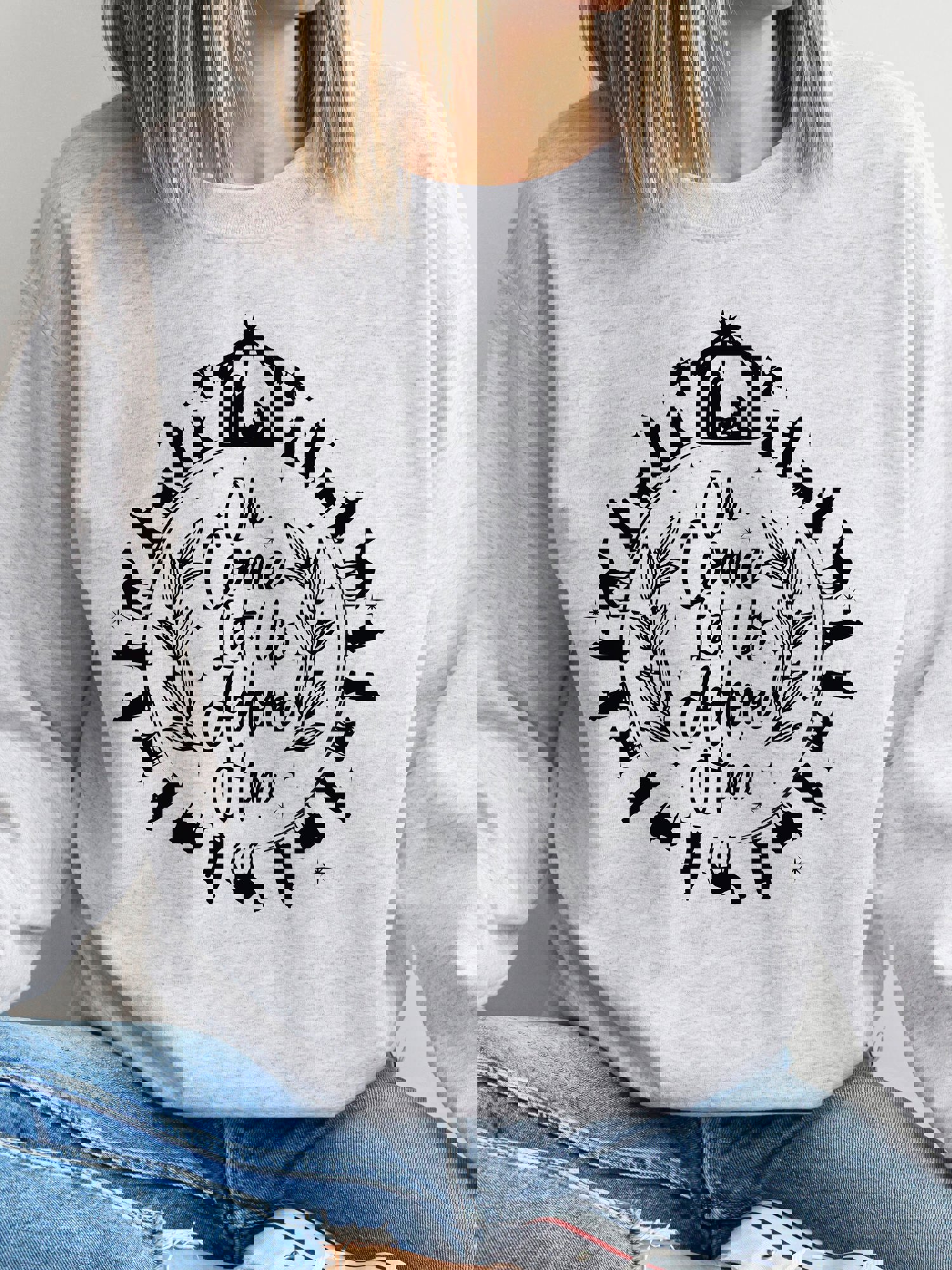 Ornament Come let us Adore Him Graphic Sweatshirt