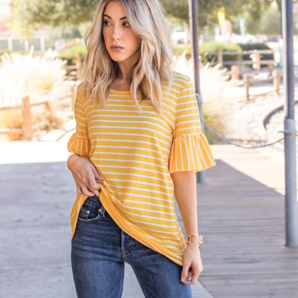Cute color and good length. Fabric is quite stiff, not much stretch to it. If you, like me, have larger upper arms I would size up to accommodate for comfort.