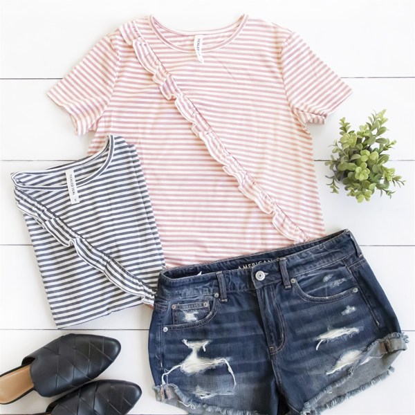 The pink and white is a cute color. The fit of the top in the sleeves/shoulders and across the bust runs small. I ordered a large.