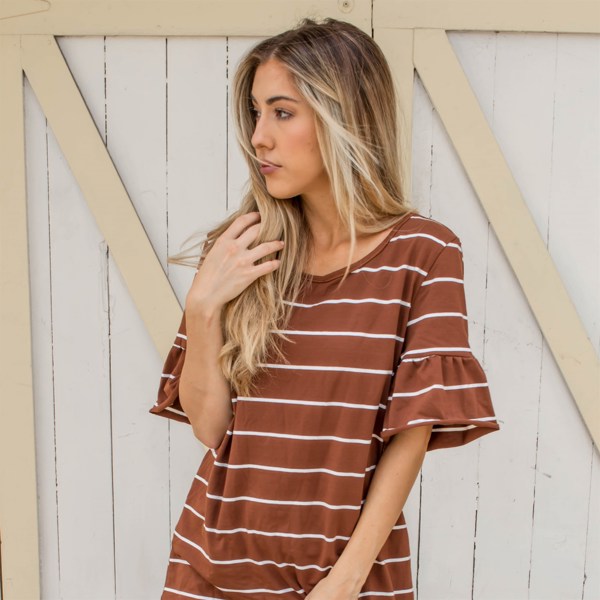 Love love love! The knot in front keeps your stomach from looking large which is normally the issue I find with rompers!
