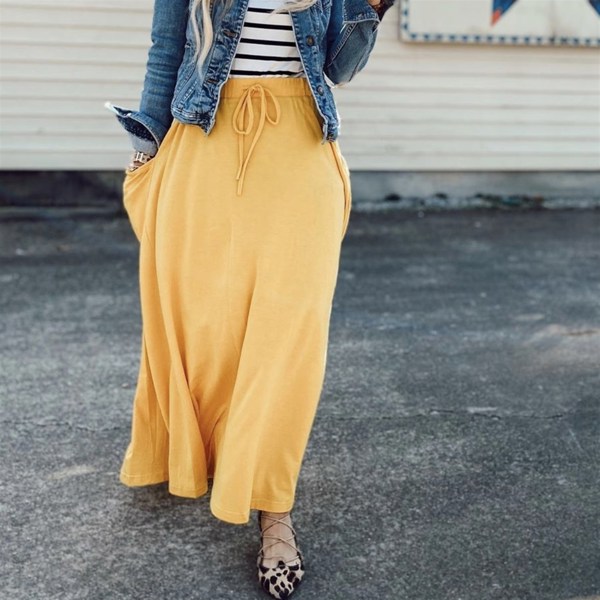 I ordered an extra large because the description doesn't say the waist is elastic so I assumed it wasn't. So it's a little big on me. But still fits great and is super cute! The material is kind of heavy but the skirt has a beautiful flow to it.