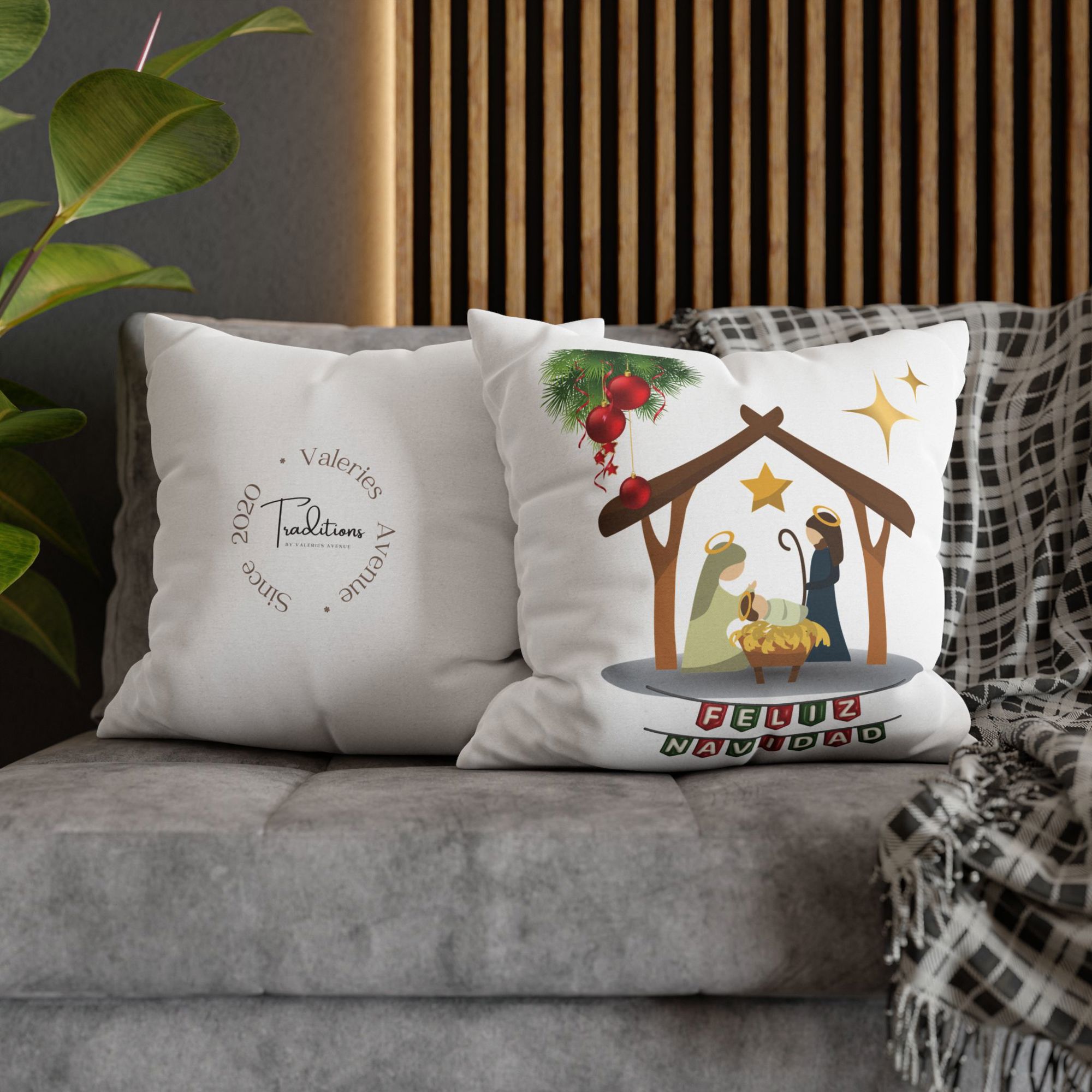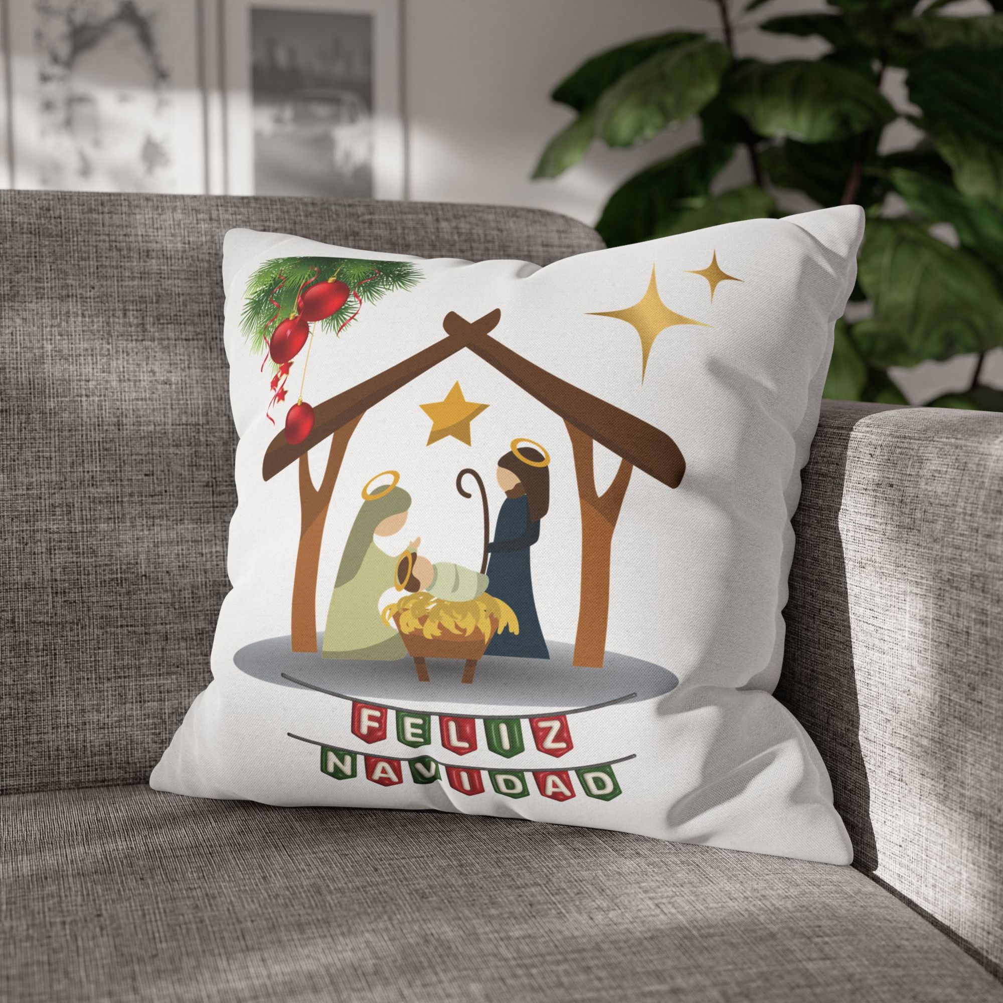 Feliz Navidad printed Nativity Square Pillow cover