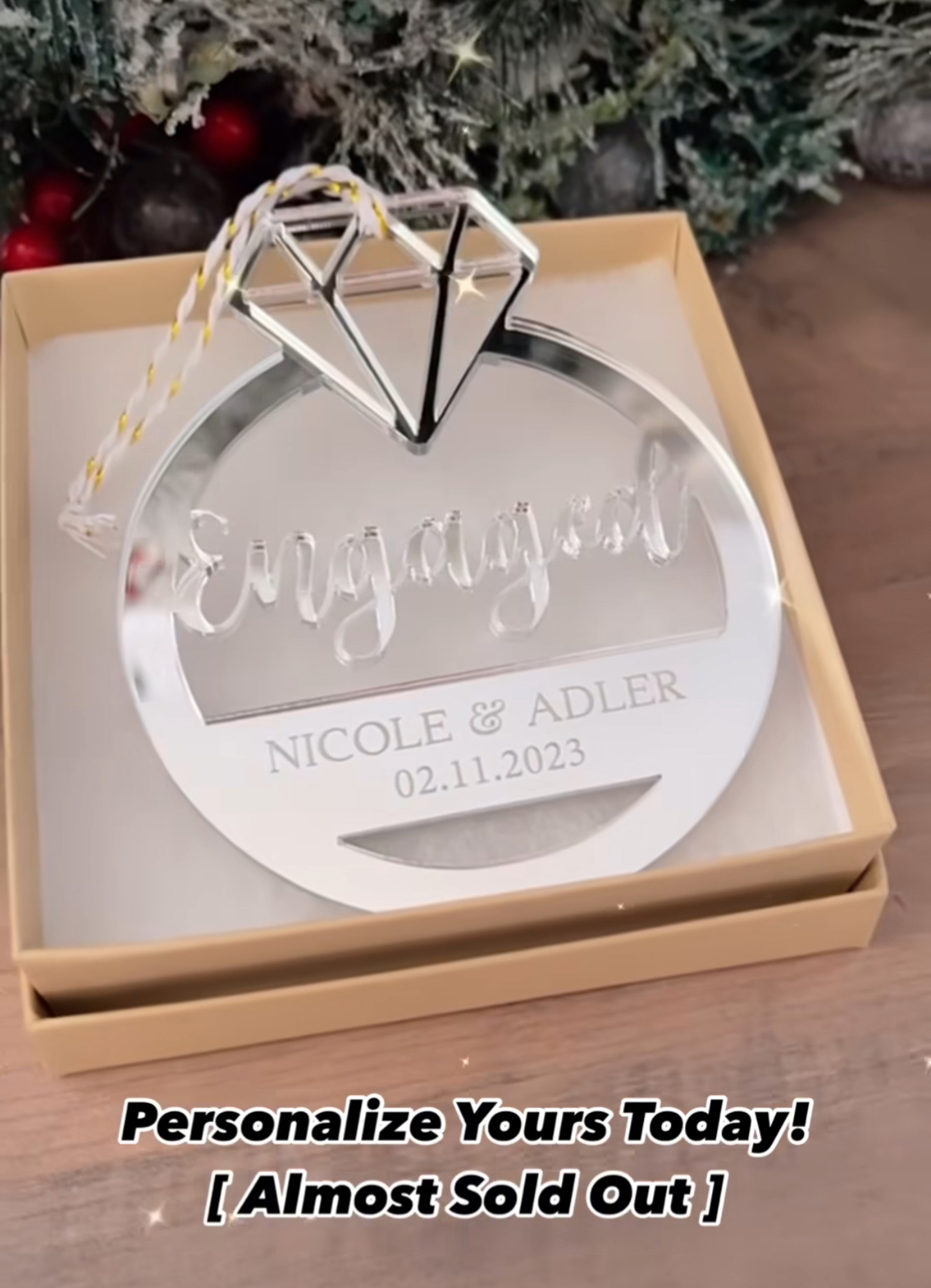 💍 First Christmas Engaged Personalized Laser Cut Acrylic Ring Ornament