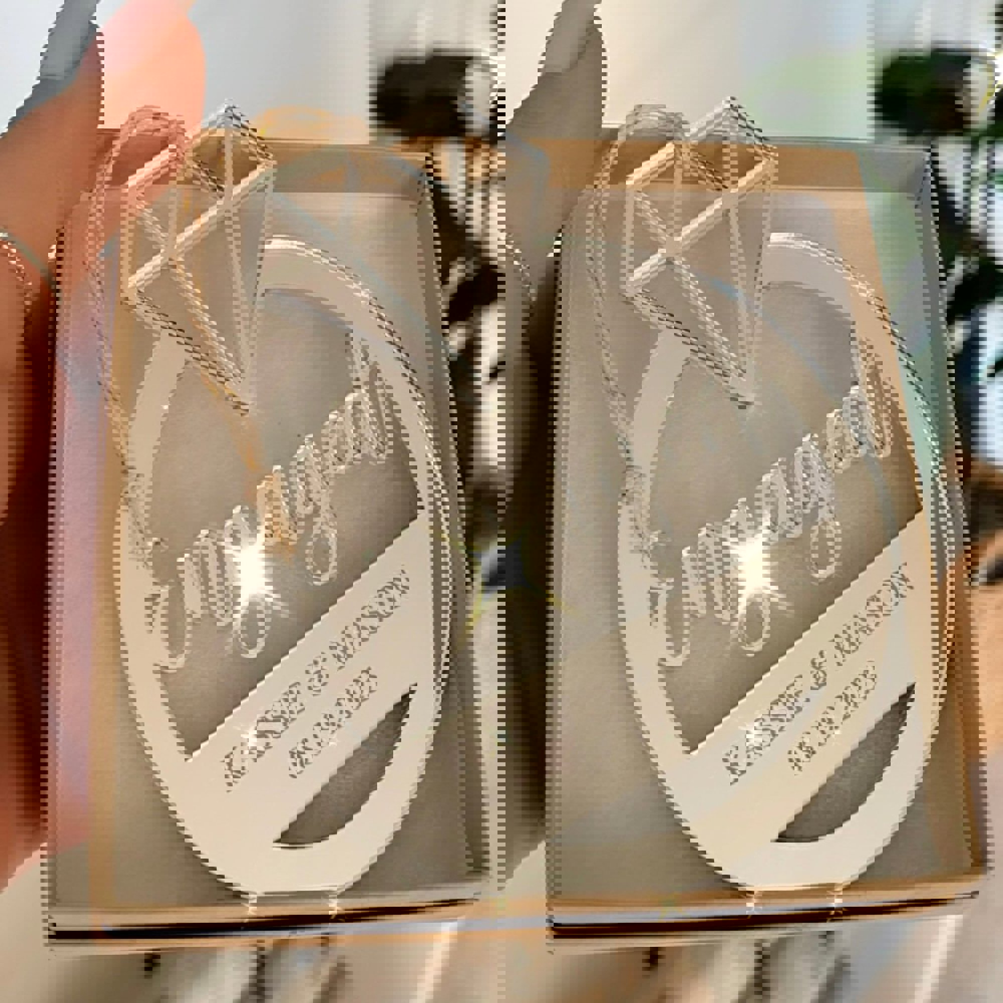 Our personalized laser-engraved Christmas ornaments make truly meaningful gifts that become cherished keepsakes for years to come. Customized with the couple’s names and engagement date, this ring ornament is the perfect way to commemorate a once-in-a-lifetime moment.