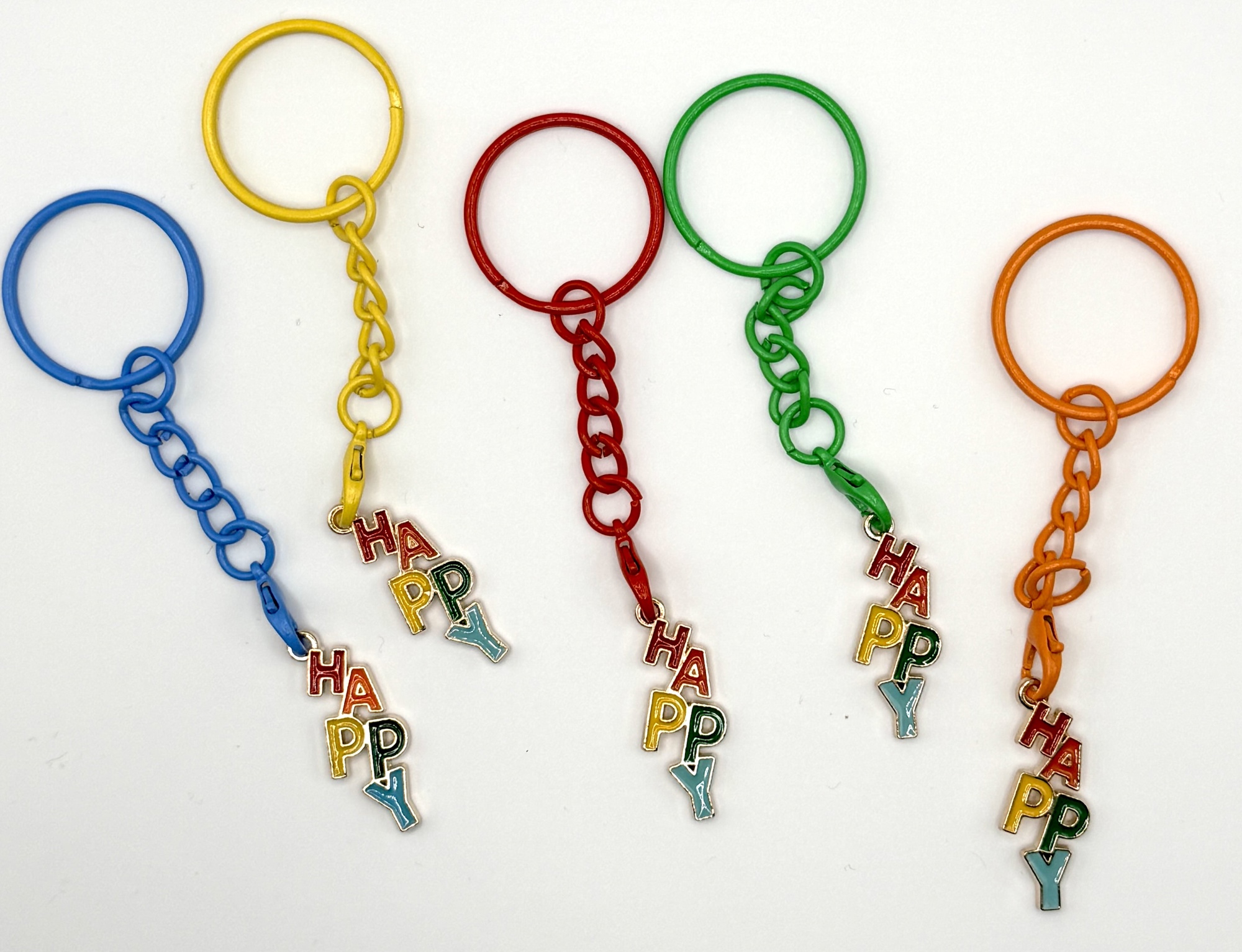 These playful “Happy” charm keychains and bag charms add a pop of rainbow-bright color to your everyday essentials. Clasp colors are selected at random for a fun surprise, but if you have a color preference, feel free to leave a note at checkout or email us at support [at] whybegin.com.