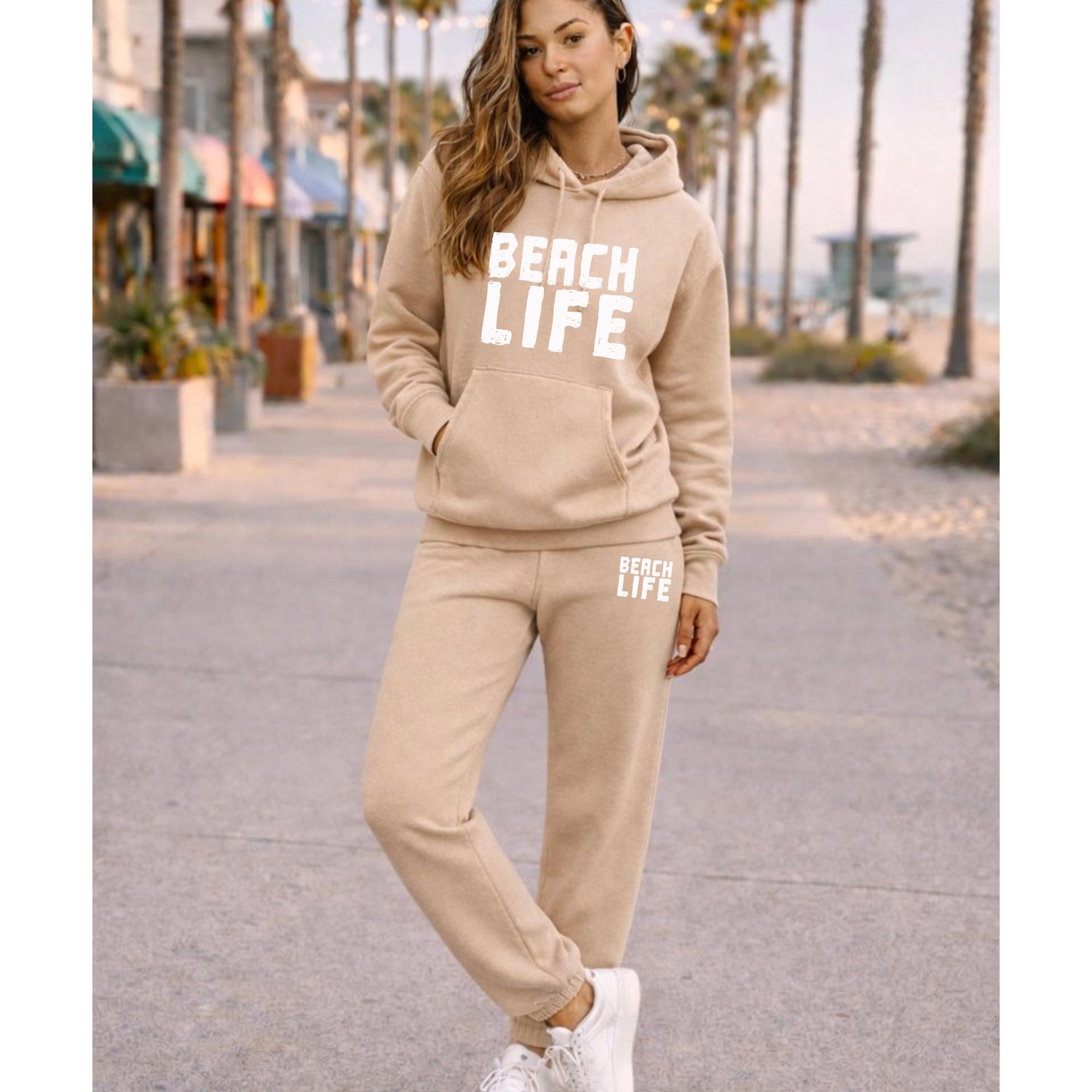 Introducing our "Beach Life" Sweat Set, a perfect blend of comfort and style for those who love the coastal vibe. This cozy set, printed on the trusted Gildan brand, includes a hoodie and sweatpants, designed to keep you warm during breezy beach days or relaxed evenings. The hoodie features a vibrant beach-inspired print that evokes memories of sunlit shores and ocean waves, while the matching sweatpants ensure a comfy fit with an adjustable drawstring waistband. Ideal for both lounging and casual outings, this set is crafted from high-quality materials that promise durability and a soft touch against your skin. Embrace the beach lifestyle wherever you go with this effortlessly stylish and comfortable ensemble.
