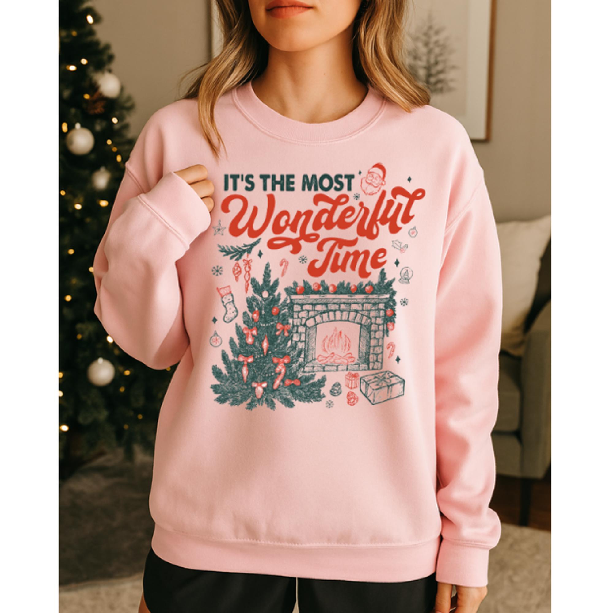 Our "Most Wonderful Time" printed Christmas sweatshirt is the perfect blend of comfort and festive cheer. Made from high-quality, soft cotton fabric, it ensures warmth and coziness during the chilly holiday season. Featuring a charming design with the phrase “Most Wonderful Time” beautifully printed in elegant script, this sweatshirt captures the essence of holiday joy and nostalgia. Available in a range of sizes and colors, it’s a versatile addition to any winter wardrobe. Whether you're attending a holiday gathering or enjoying a cozy night in, this sweatshirt is sure to spread holiday spirit and bring smiles to those around you.